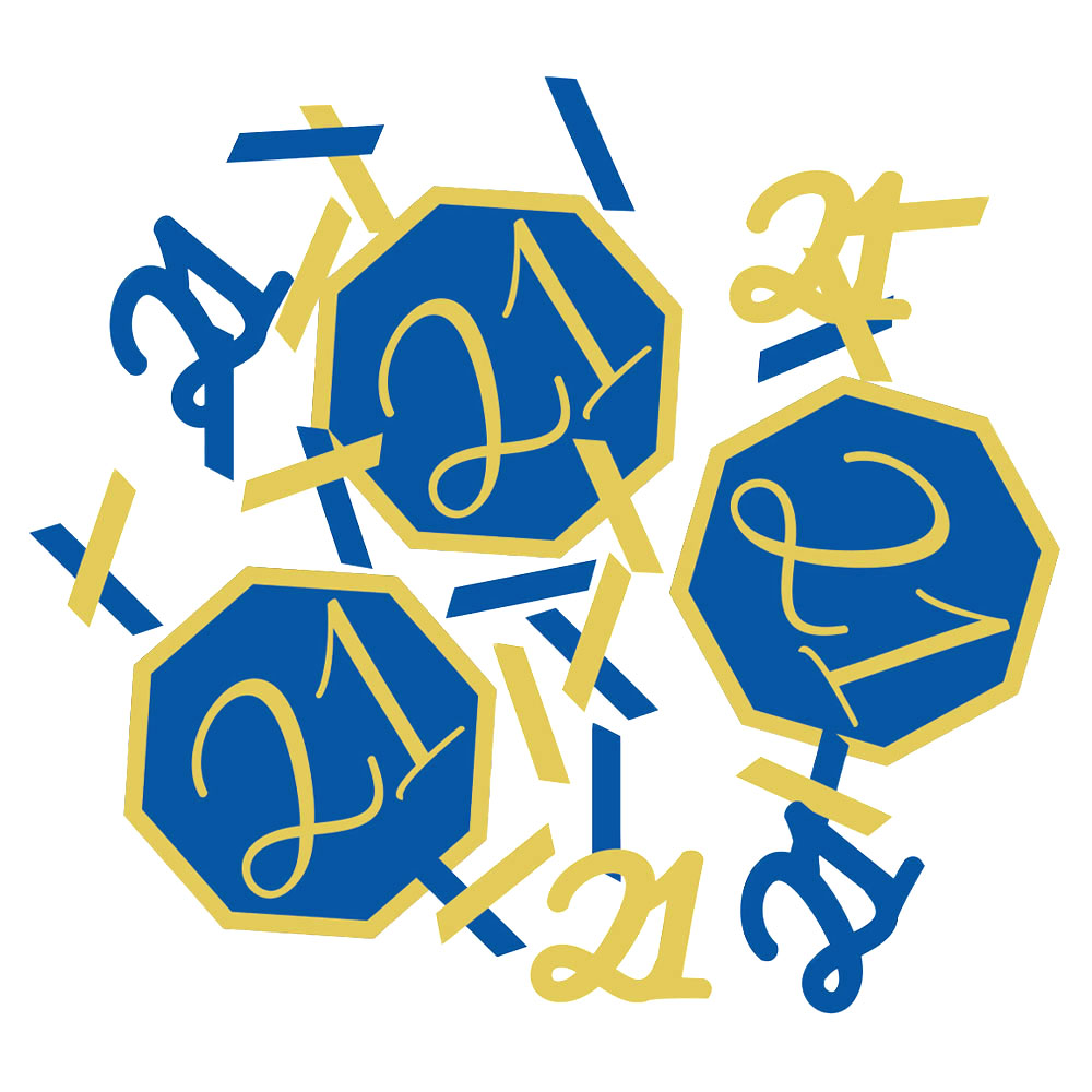 21 års Konfetti Marinblå och Guld omfattar 14 gram 21 års konfetti i marinblått och guld.