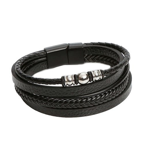 Detta läderarmband består av flera remmar, både flätade och släta. De flätade och släta remmarna tillsammans med de silvriga metalldetaljerna skapar en cool och trendig look och med sitt praktiska magnetspänne är det enkelt att både ta på och av. Ett stilsäkert val som kommer inmponera på mottagaren!