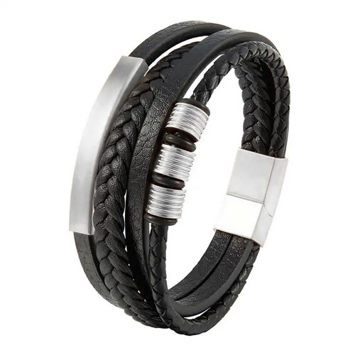 Ett helsvart multi-layer läderarmband är en perfekt accessoar för den som vill ha en klassik look. De flätade banden och silvriga detaljerna i rostfritt stål ger armbandet en extra twist.