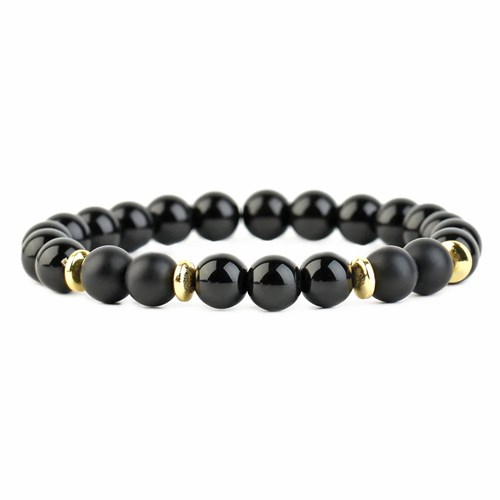 Detta eleganta herrarmband med svart lavasten och svart agat passar många stilar. Tillsammans sägs stenarna vara skyddande och lugnande hos sin bärare.