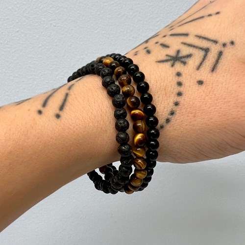 Med sina tre olika naturstenar är de inte bara snygga utan också unika eftersom naturstenarna varierar i färg. De elastiska armbanden gör det smidigt att ta på och av, samtidigt som de sitter bekvämt runt handleden.