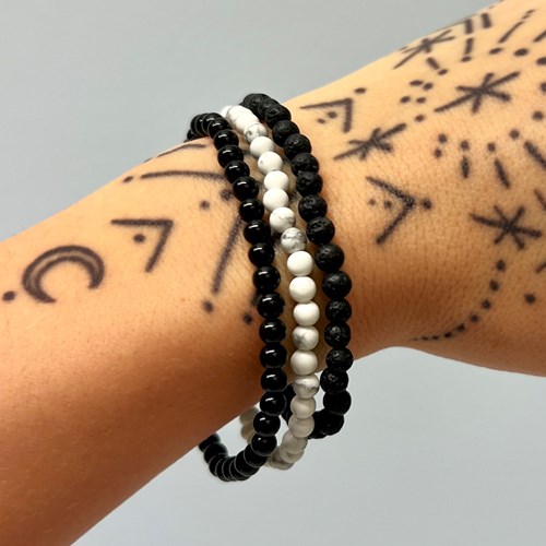 Med sina tre olika naturstenar är de inte bara snygga utan också unika eftersom naturstenarna varierar i färg. De elastiska armbanden gör det smidigt att ta på och av, samtidigt som de sitter bekvämt runt handleden.