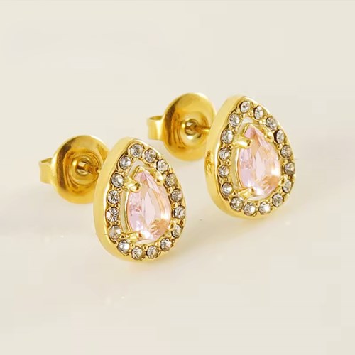 Dessa små örhängen är i rosfritt stål med guldplätering och har en liten droppformad sten i mitten med små gnistrande stenar runt. Stenen i mitten finns i fyra olika färger. Välj mellan blå, vit, rosa och svart i drop down-menyn!