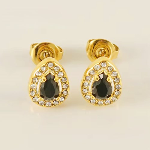 Dessa små örhängen är i rosfritt stål med guldplätering och har en liten droppformad sten i mitten med små gnistrande stenar runt. Stenen i mitten finns i fyra olika färger. Välj mellan blå, vit, rosa och svart i drop down-menyn!