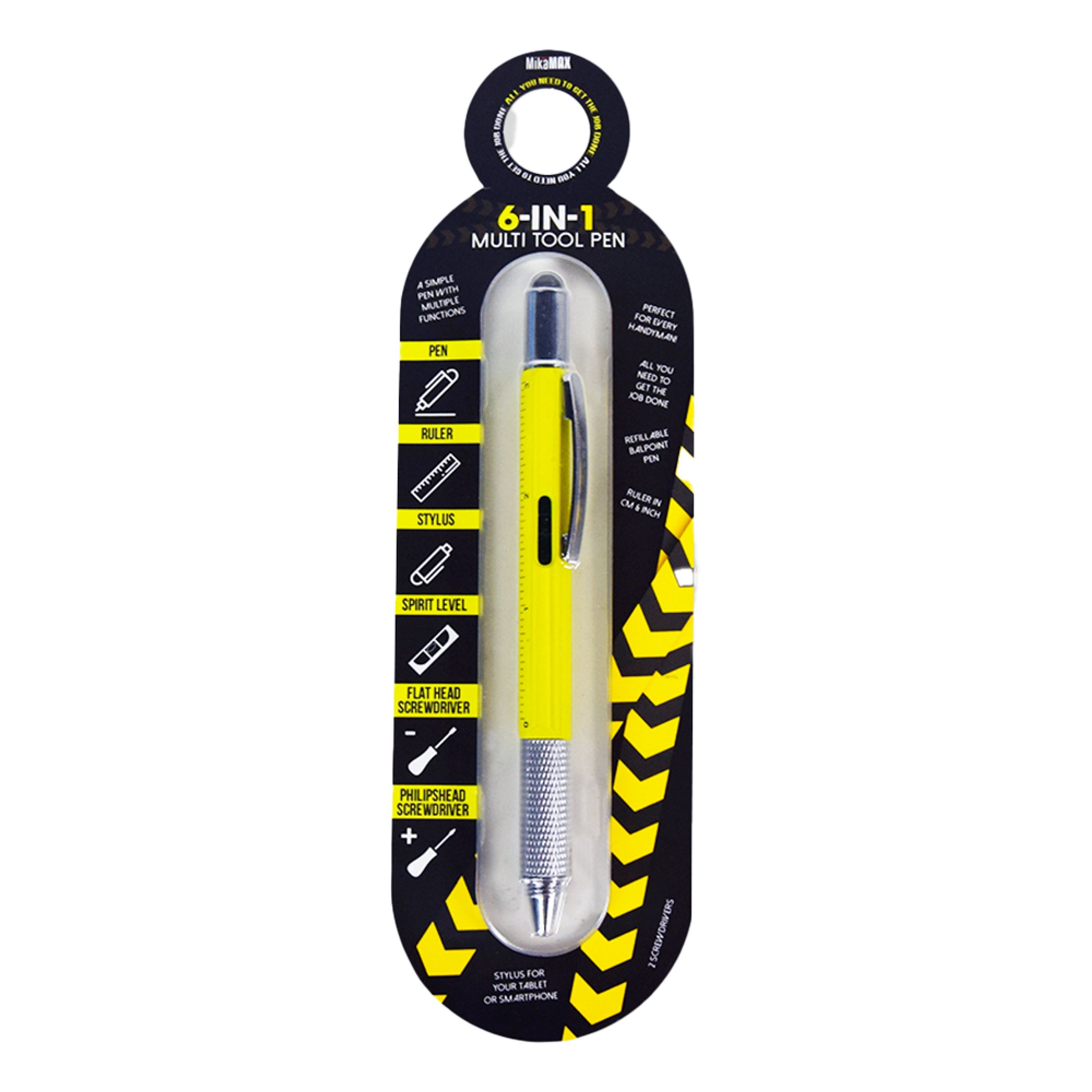 6-i-1 Multiverktyg Penna innehåller 6 olika verktyg och kommer i 3 olika färger; svart, gul och silver. Detta är den perfekta pennan för alla gör-det-själv:are. Perfekt present till pappa i julklapp eller farsdag-present!