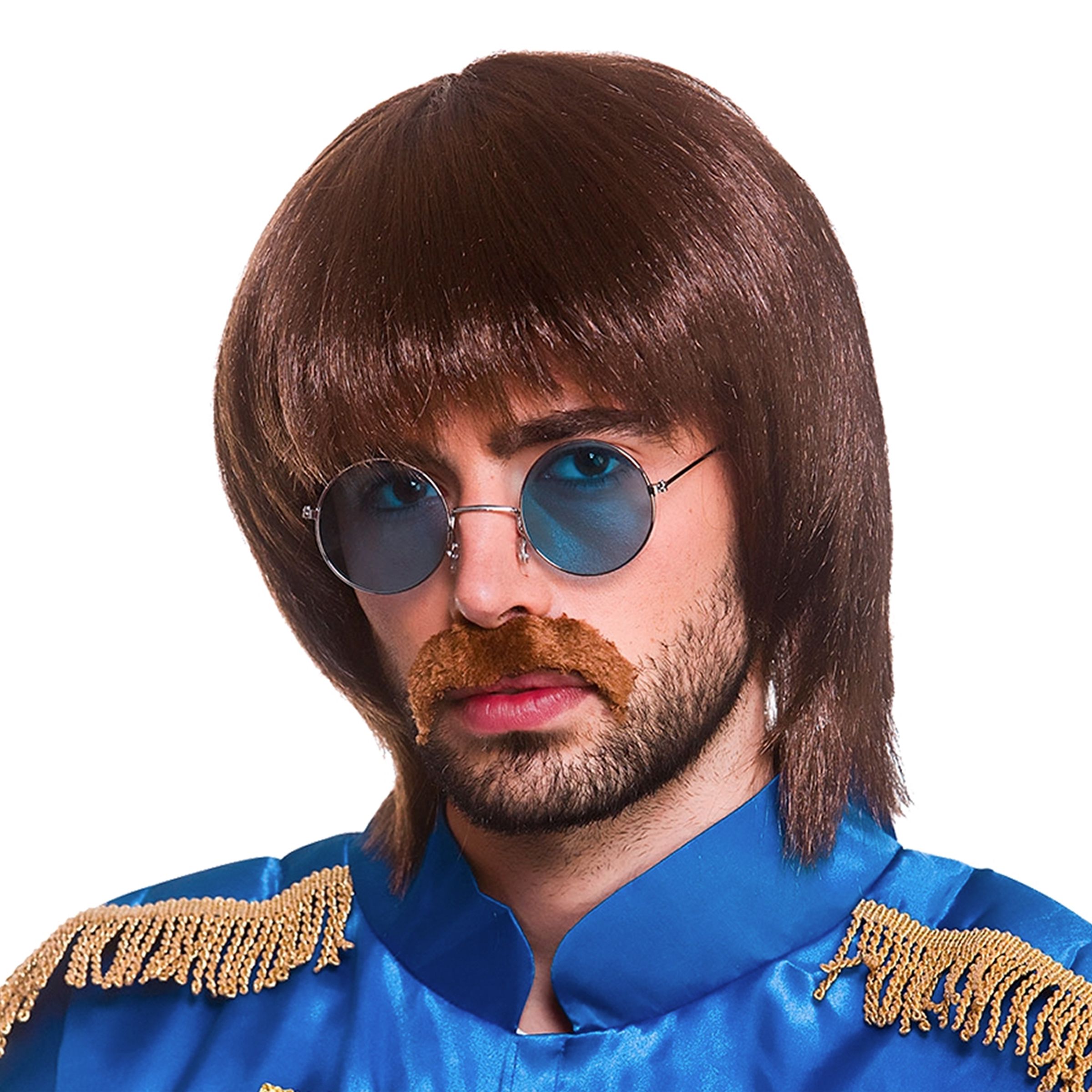 60-tals Pop Peruk är en rolig peruk som efterliknar en typisk 1960-talsfrisyr. Peruken är brun, nedkammad med kort lugg och längre nacke. Du kompletterar looken med ett par brillor och en mustasch!