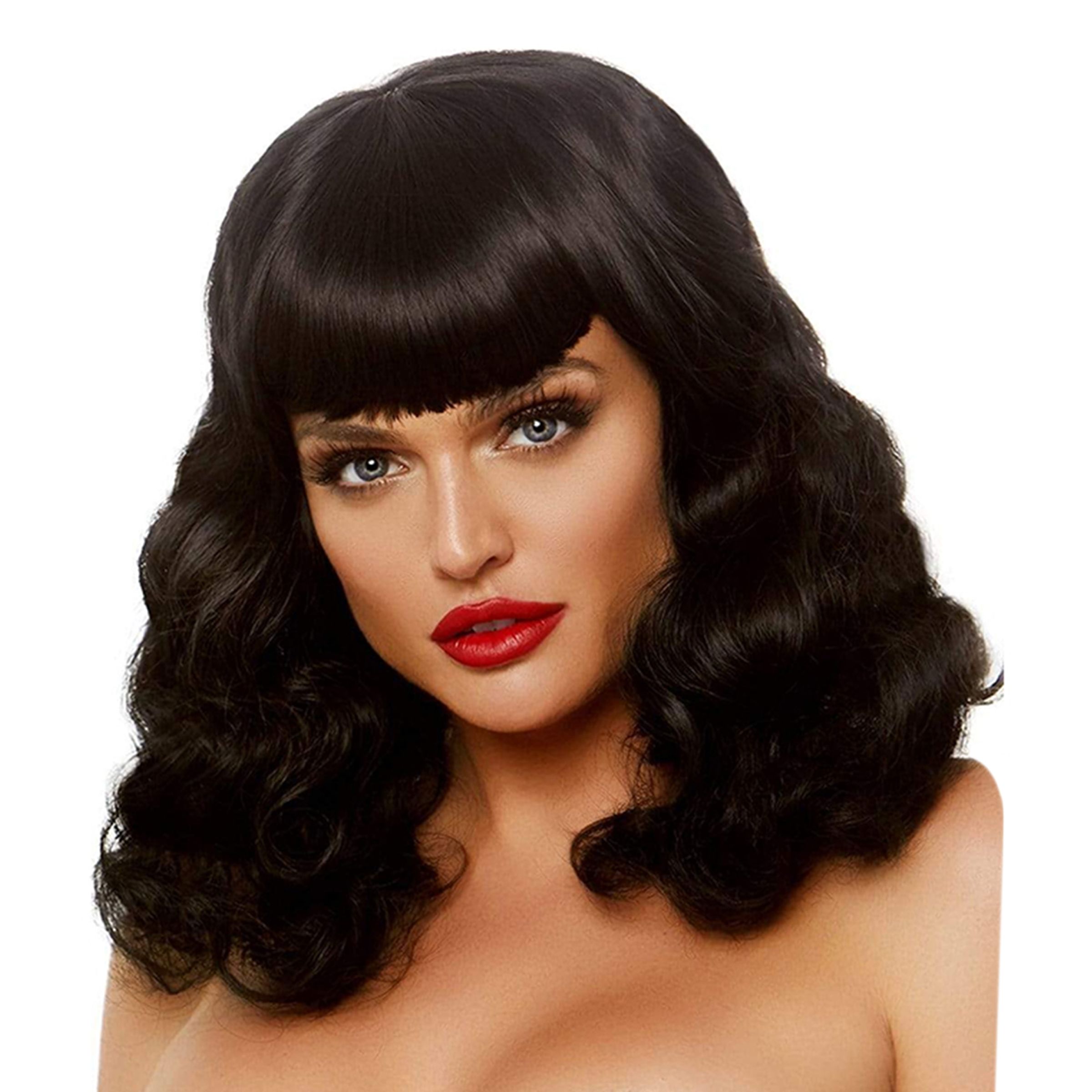 60-tals Svart Lockig Deluxe Peruk är en peruk av hög kvalitét som har en svartbrun färg. Peruken når ner till axlarna och har ett lockigt svall med kortklippt lugg. Denna peruk passar perfekt till maskeradfesten med 60-talstema!