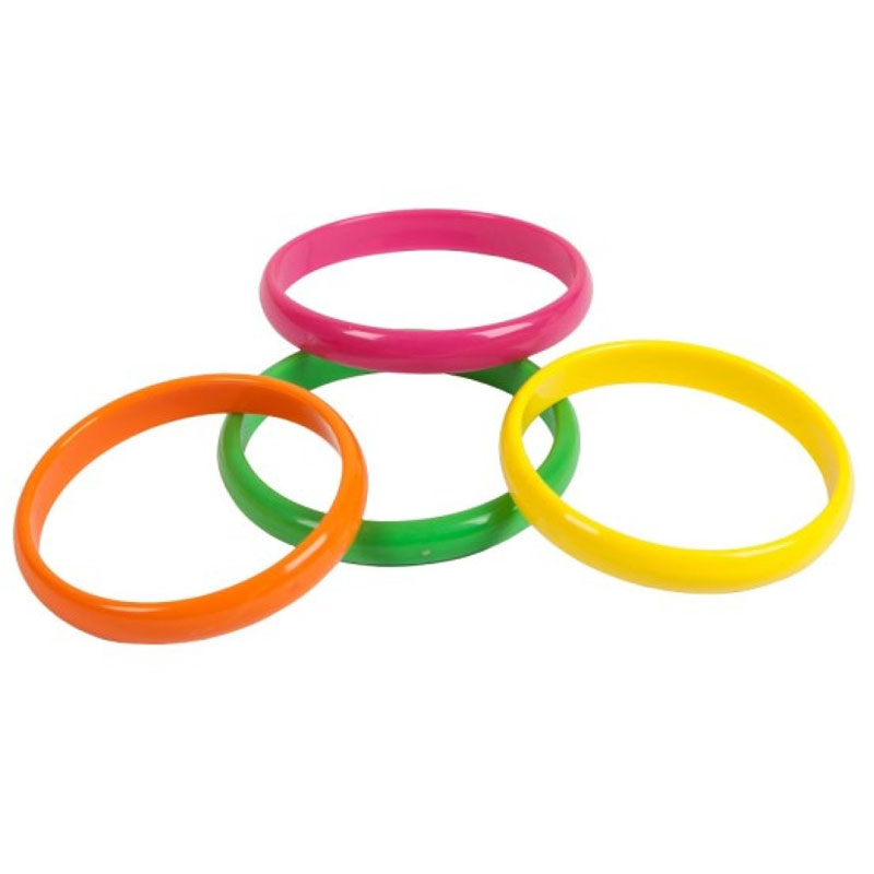 80-tals Armband Neonfärgade kommer tillverkade av plastmaterial och omfattar armband i färgerna gul, grön, rosa och orange.