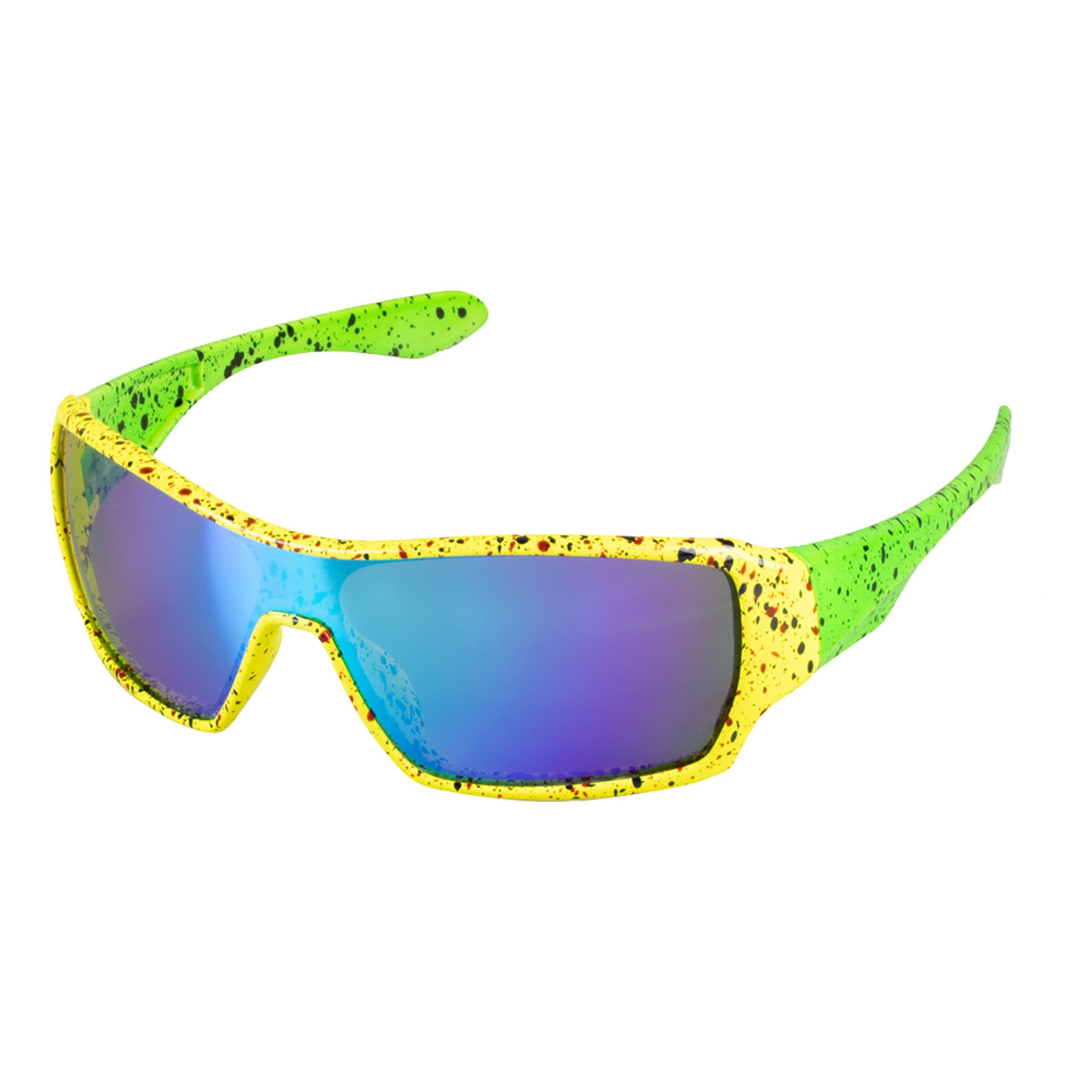 80-tals Glasögon Gul/Grön är ett par tonade solglasögon med ett coolt stänktryck i grönt och gult, perfekt för den som älskar 1980-talet eller som ska gå på tidstypisk maskerad. Komplettera dina solbrillor med ett glasögonsnöre och du blir lika tuff som de riktigt hippa på 80-talet.