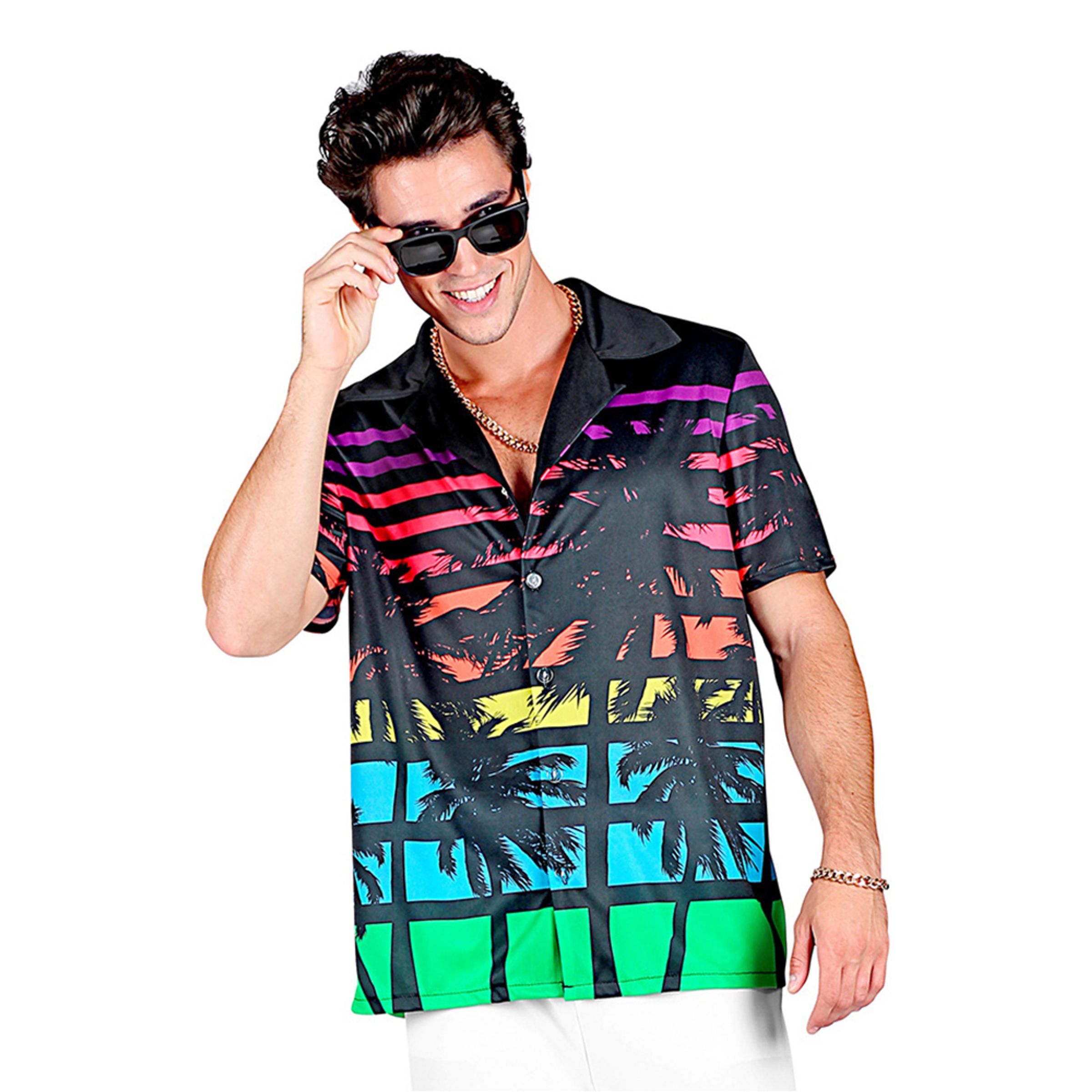 Få till en härlig strandkänsla med denna färgglada hawaiiskjorta! Med palmmotiv är det tydligt att du hör hemma på festen med hulakjolar och paraplydrinkar, och att den är i 80-talsstil gör dig dessutom härligt retro.