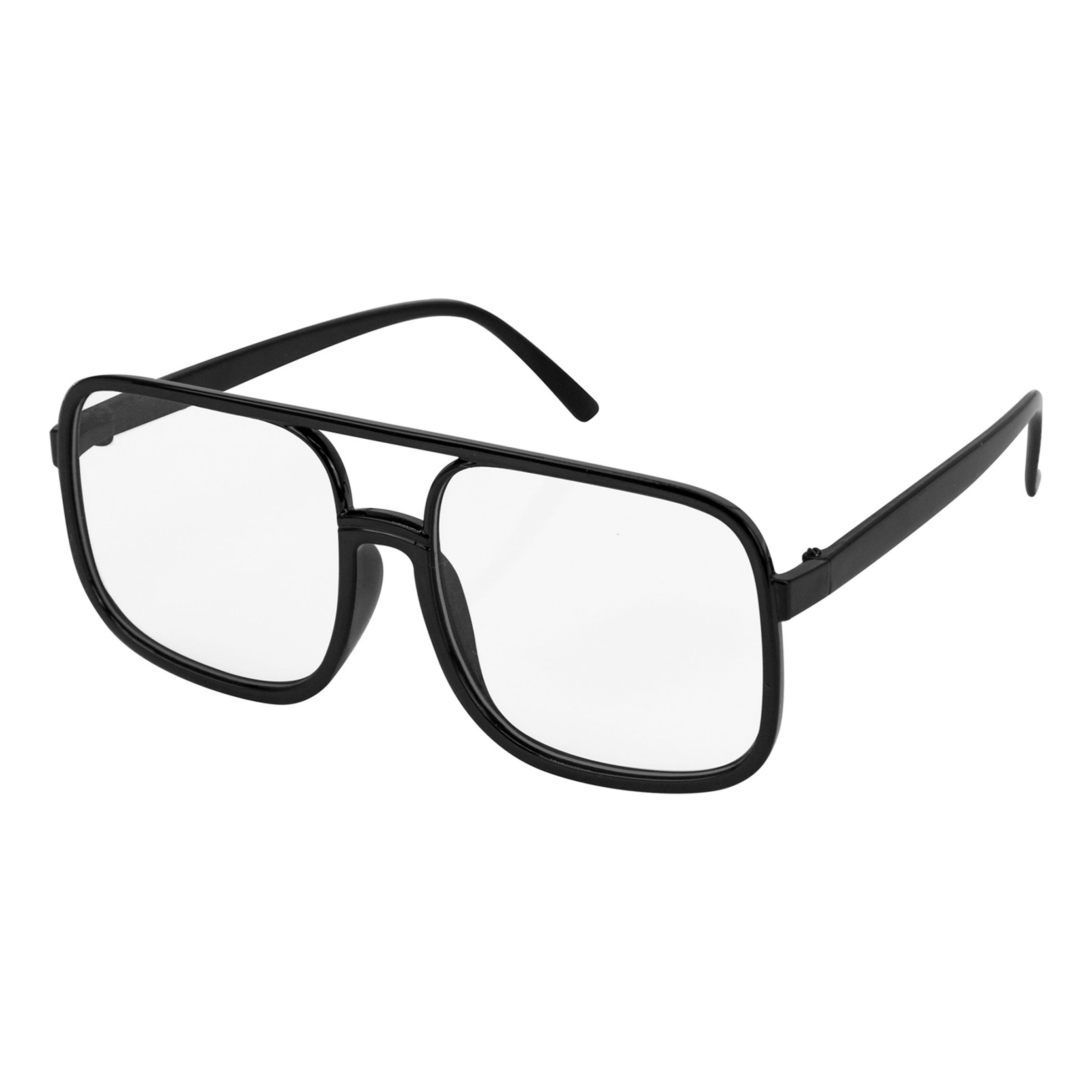 80-tals Svarta Glasögon kommer med svarta bågar och transparenta glas, i en snygg och stilren design som gör att de passar i princip vilken outfit som helst.