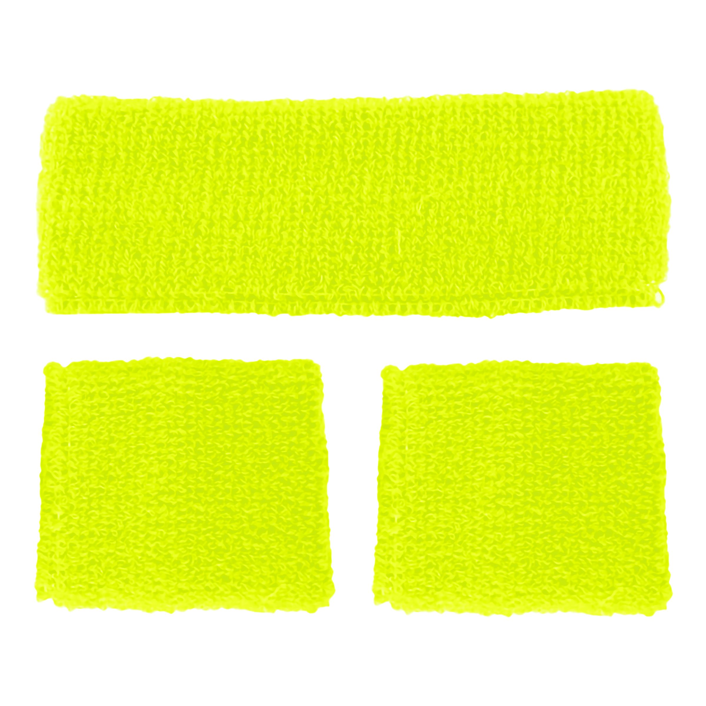Med hjälp av 80-tals Svettband Kit Neongul kommer du kunna återskapa en komplett 80-talslook utan problem. I kitet får du svettband för både handleder och panna i en neongul färg.