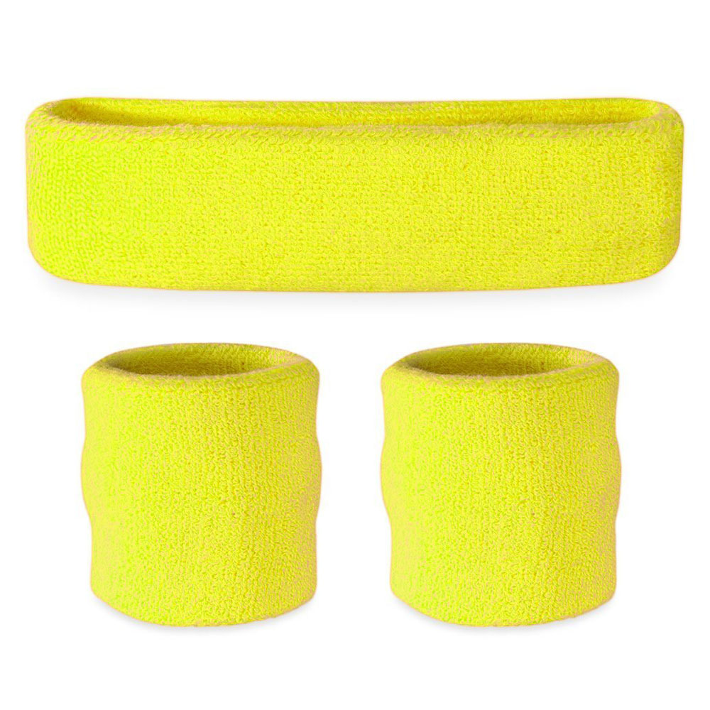 80-tals Svettband Neongul innehåller ett paket med neongula svettband för armarna och huvudet. Svettbanden är i stretch vilket gör dom bekväma att använda.
