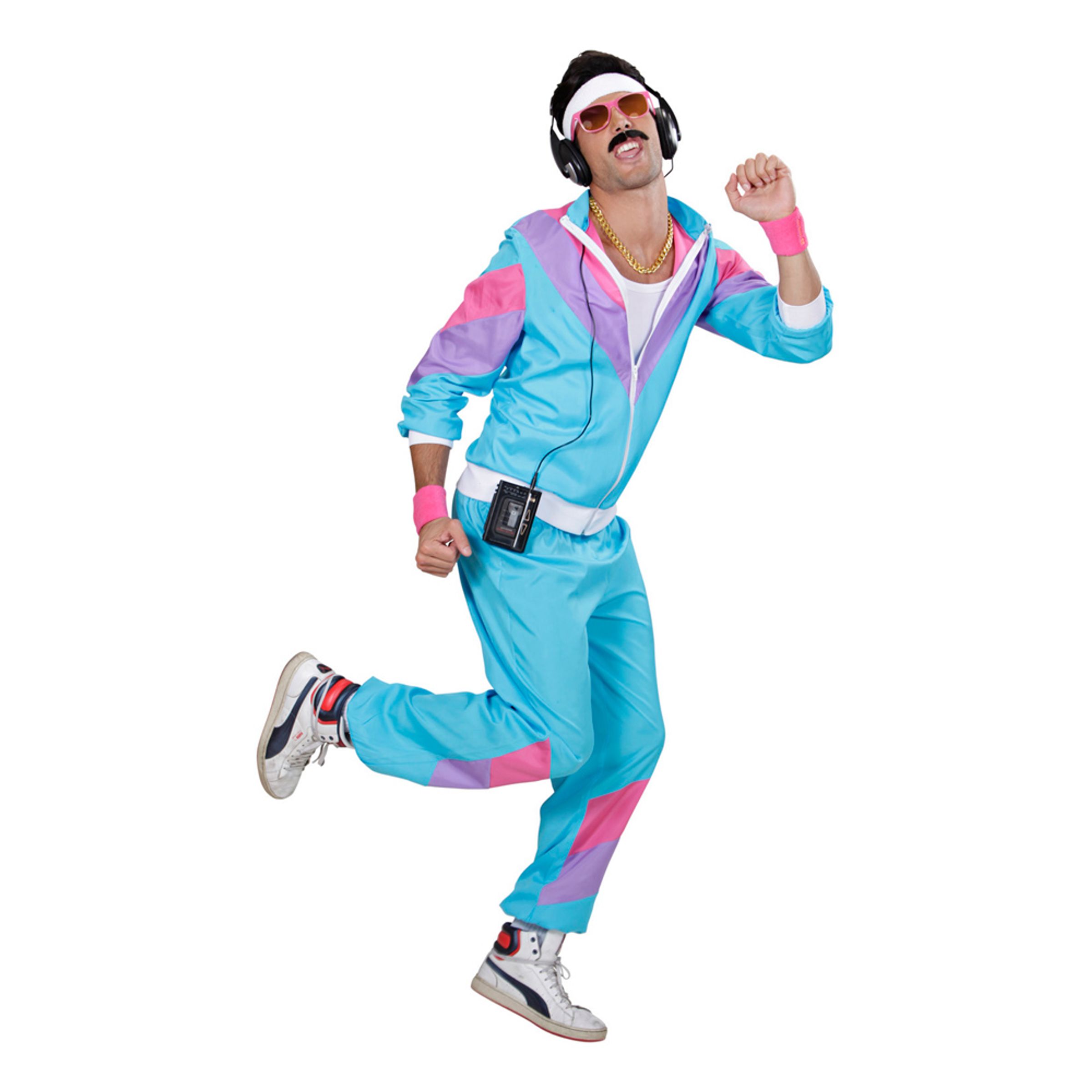 Träna som man gjorde på 80-talet iklädd denna färgglada träningsoverall maskeraddräkt. De påtagliga, gälla färgerna ger dig en autentisk 80-talslook, perfekt för maskeraden med samma tema. Skaffa en till din sambo också så ni matchar varandra sådär 80-talshurtigt under eran joggingtur tillsammans!