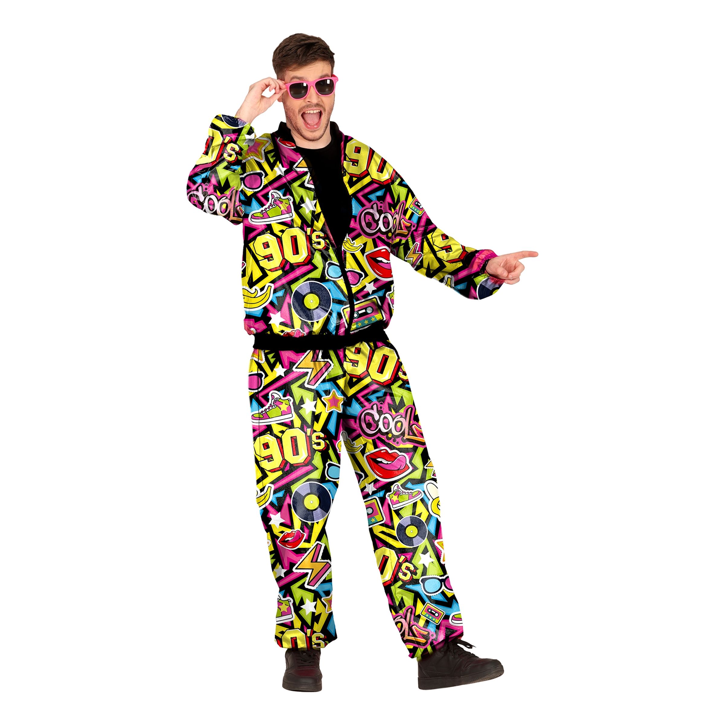 90s Tracksuit Herr Maskeraddräkt är en snygg träningsdress med färgglada motiv á la 90-talet! Med matchande jacka och byxor är du redo för att göra entré på festen med 90-talstema!