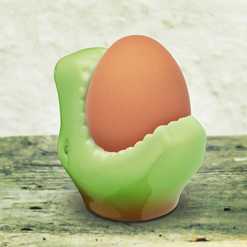 Denna coola äggkopp är formad som kungen av alla dinosaurier, the one and only: Tyrannosaurus Rex! Äggkoppen är tillverkad i keramik och målad i en härligt grön färg.