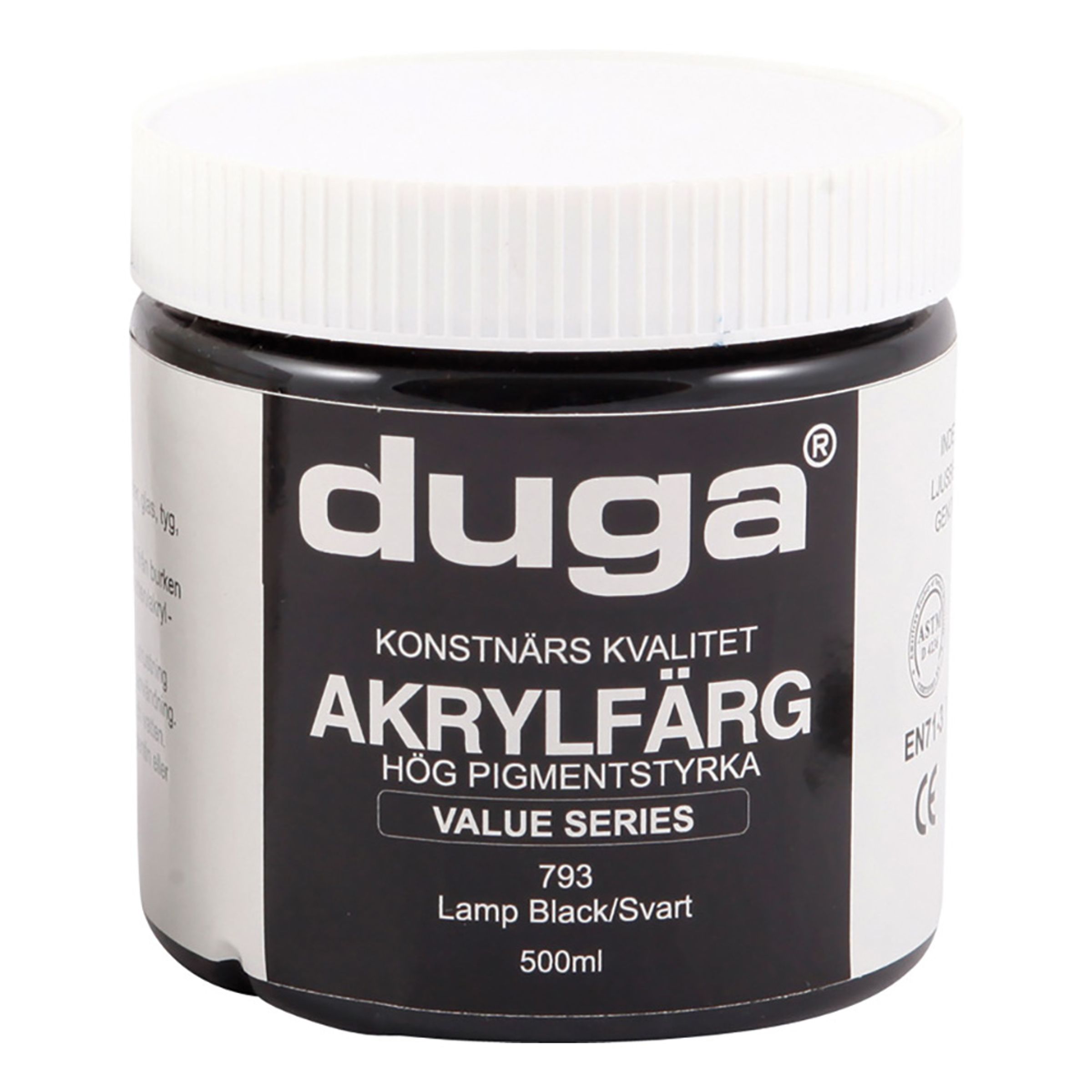 Akrylfärg Svart innehåller en burk med svart akrylfärg med hög pigmentstyrka som passar både den erfarna målaren och nybörjaren. Burken innehåller 500 ml. Färgen kan användas på papper, målardukar, trä, metall, glas och mycket mer.