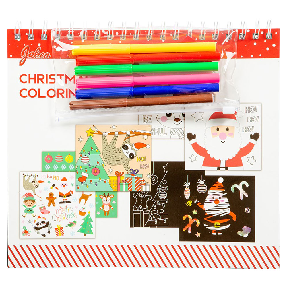 Aktivitetsbok med Tillbehör Jul omfattar en aktivitetsbok med jultema. Häftet innehåller flera sidor med julig scratch art, färgläggningssidor med julmotiv och tomma ritblad att själv måla på. Med häftet kommer juliga klistermärken, foam stickers, tuschpennor, scratchverktyg i trä samt ett litet plastfodral som går att öppna och stänga.