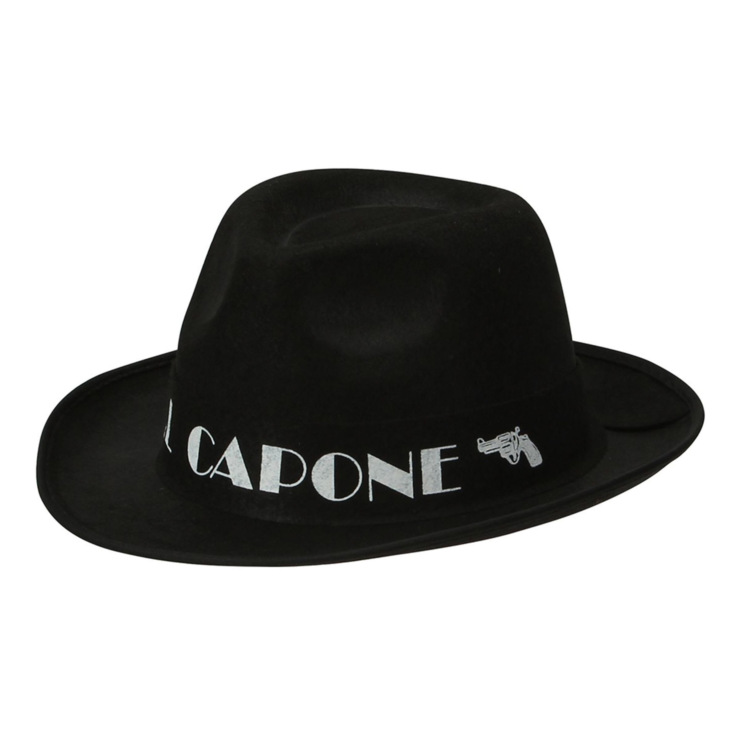Al Capone Svart Gangsterhatt kommer i storleken One size för vuxna och passar perfekt till halloweenfesten, men också till gangsterfesten! På hatten finns också texten: "Al Capone".