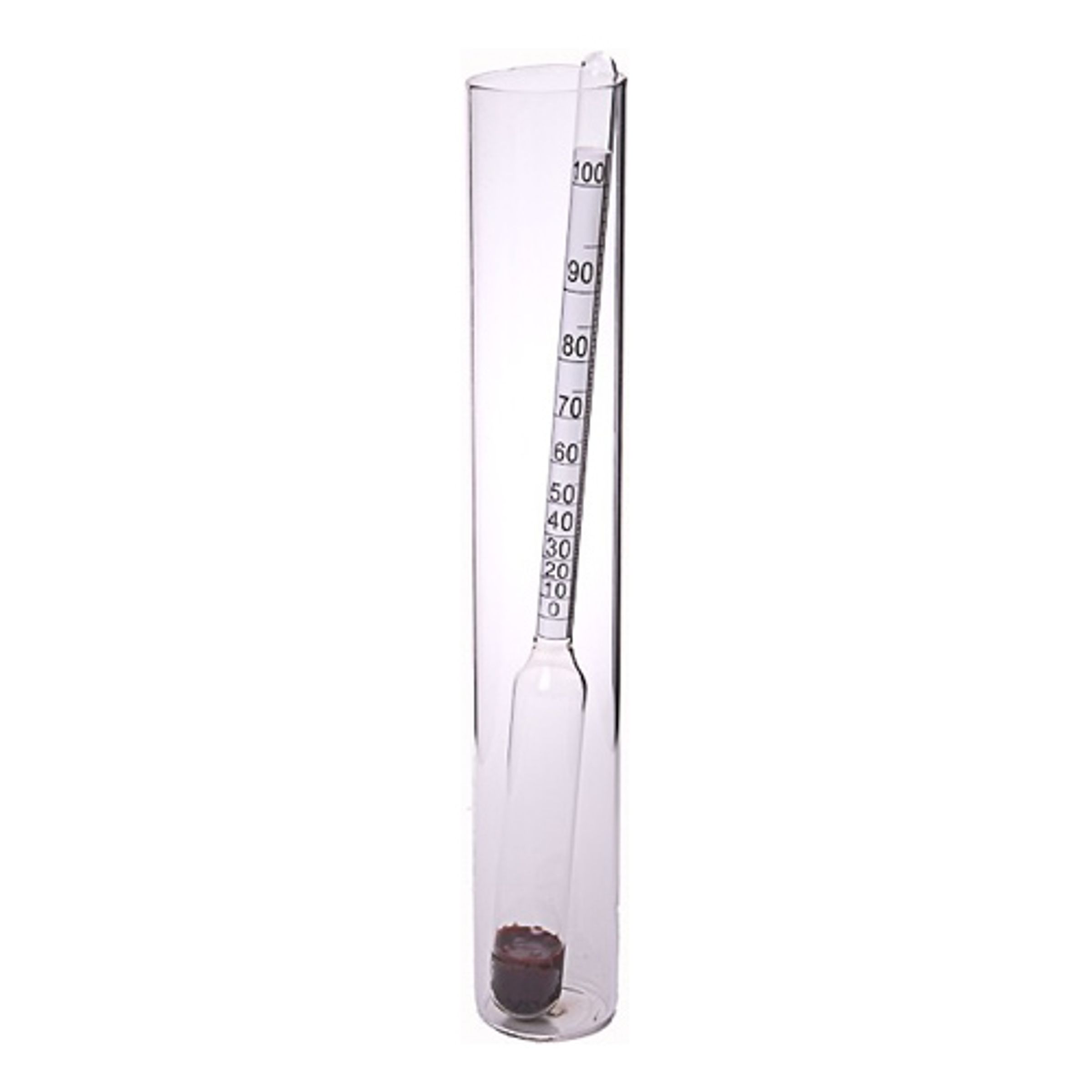 Praktisk alkoholmätare komplett med cylinder för att mäta alkoholhalten i sprit. Fungerar ej med vin, öl eller likörer utan endast ren sprit. Mätglaset är 20 cm högt.