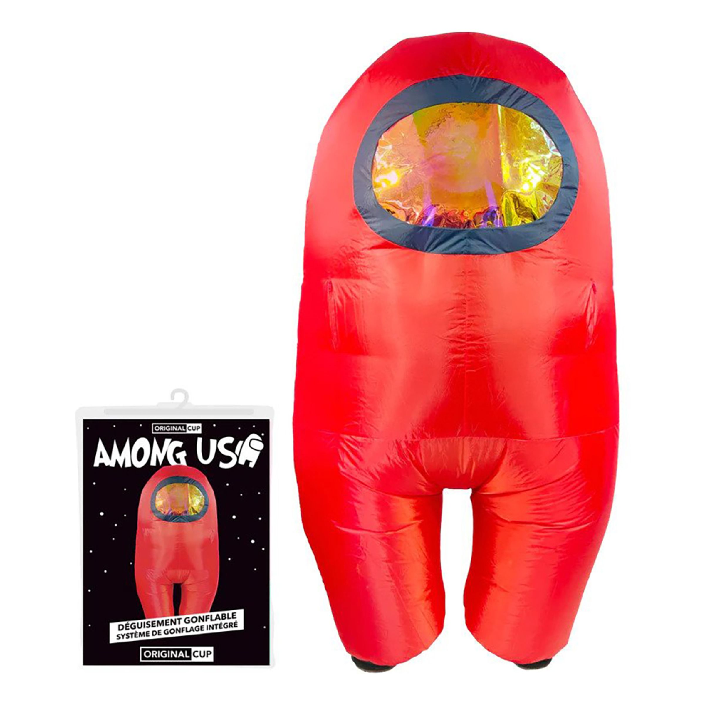 Uppblåsbar Among Us Maskeraddräkt är en stor, röd, uppblåsbar dräkt som förvandlar dig till en av karaktärerna från det populära spelet Amon Us. Dräkten hålls uppblåst av en liten inbyggd fläkt som drivs på vanliga AA-batterier (ingår ej) och har en batteritid på cirka fyra timmar. Komplettera gärna med en uppblåsbar kniv för en fullbordad look!