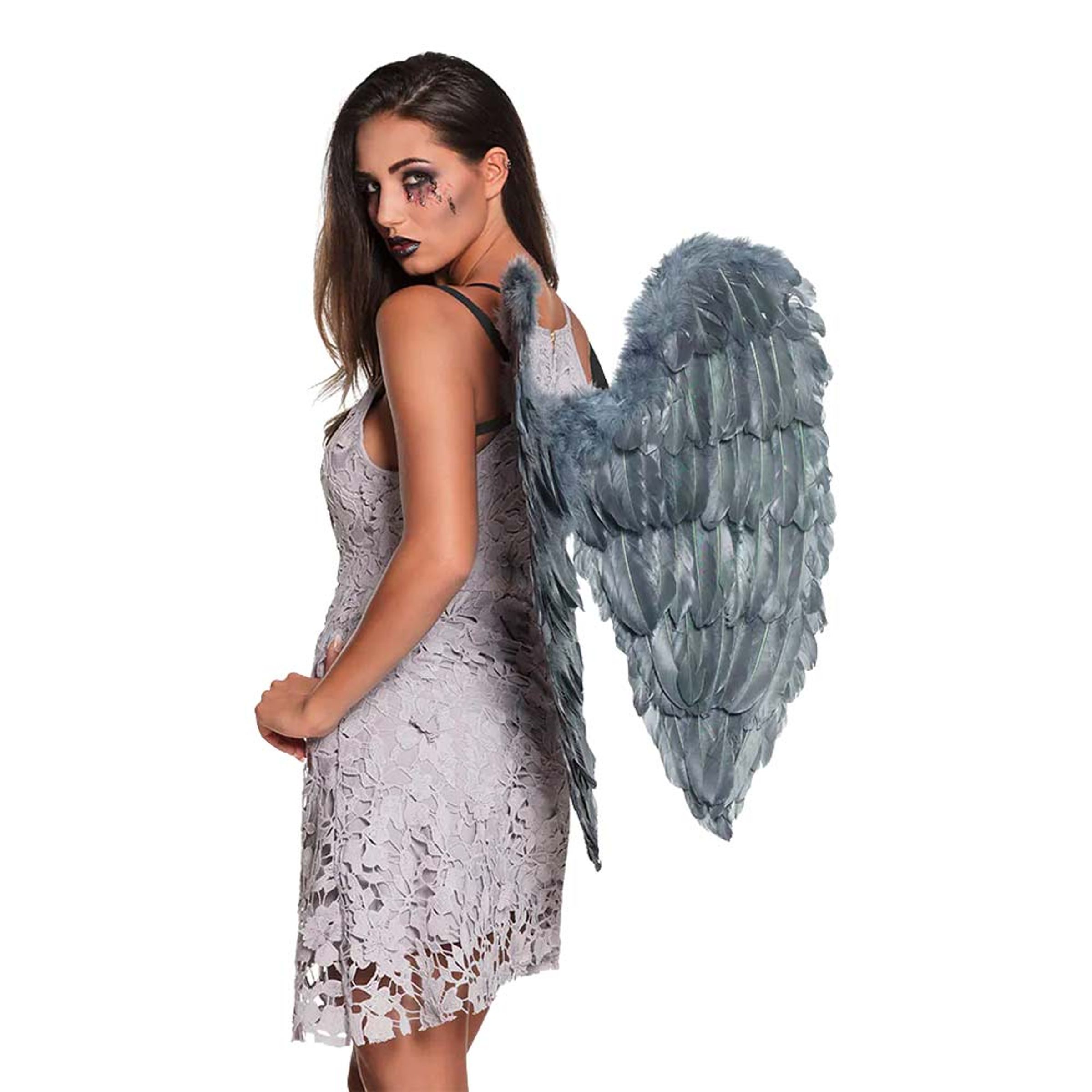 Änglavingar Grå är ett par vingar som du enkelt kan hänga på dig som accessoar på halloweenfesten. För vem vill inte klä ut sig till en vacker varelse som en ängel?