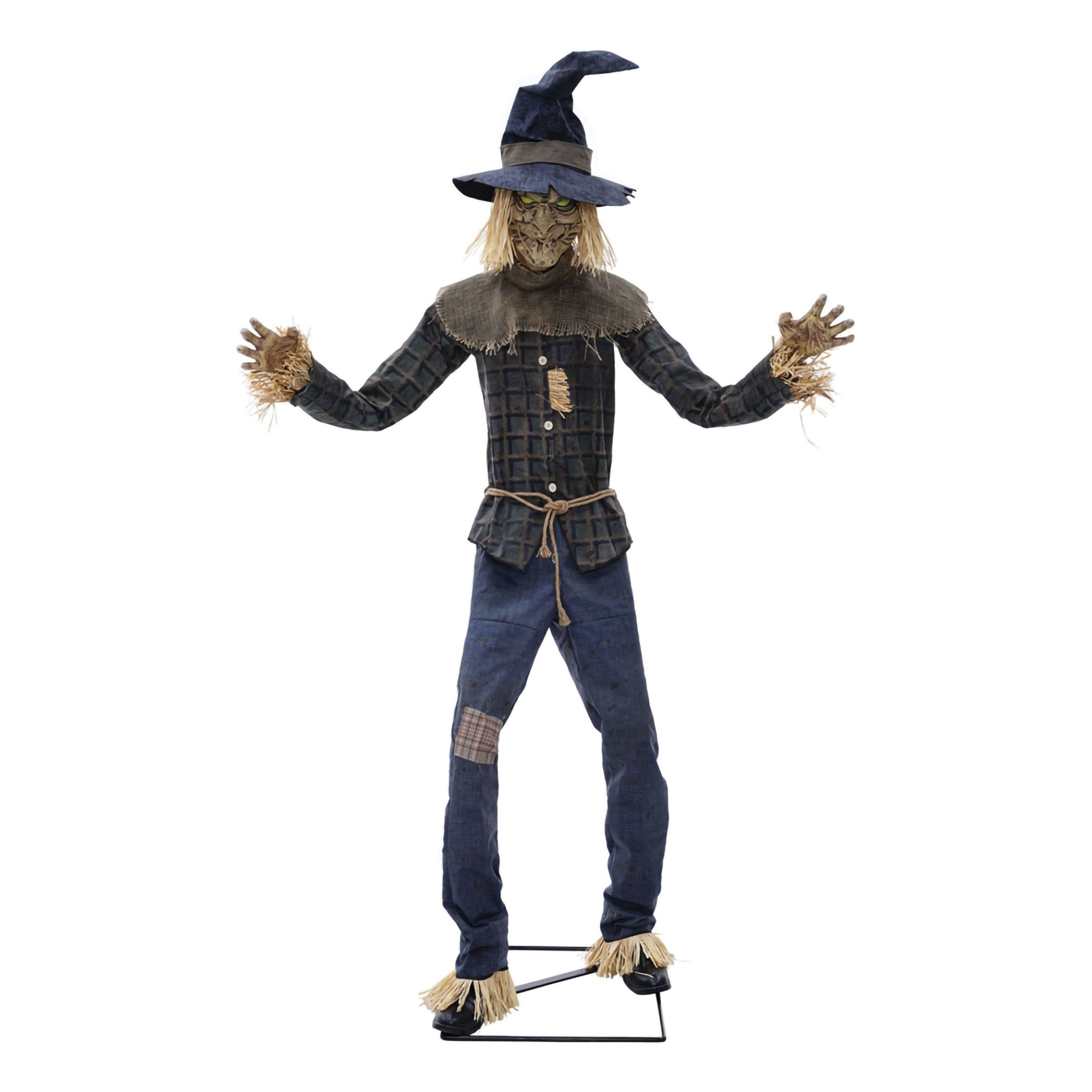 Animerad Fågelskrämma med Ljud & Ljus Prop har en imponerande höjd på 2 meter och efterliknar en fågelskrämma med en läskigare touch. Ögonen lyser upp i en kuslig gul färg när propen kommer till liv. Propen rör på sig och säger läskiga meningar på engelska med kusliga bakgrundseffekter.