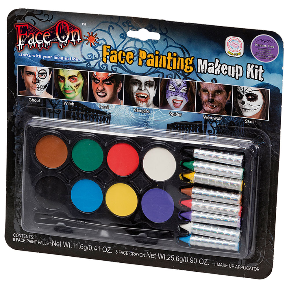 För att förenkla skapandet av en häftig ansiktsmålning har detta ansiktsfärgs kit även kritor, som gör detaljer lite enklare att måla! Den har även en ansiktsfärgs palett med flera olika färger som gör det riktigt lätt att skapa en passande halloween sminkning.