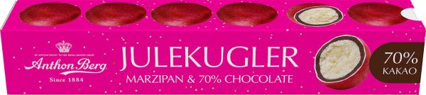 Dragerade julkulor med marsipan och mörk choklad från Anthon Berg.