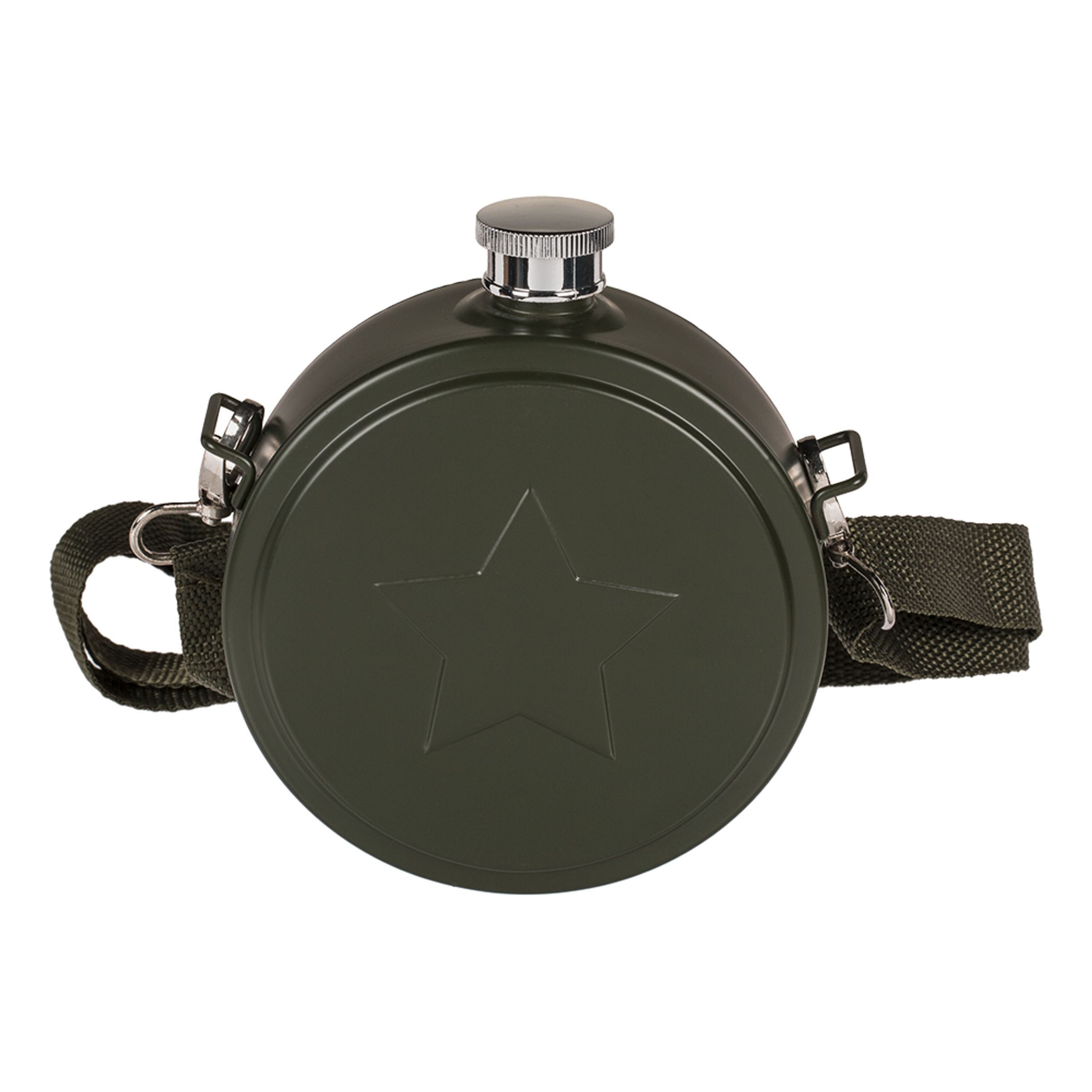 Arméplunta med Axelband är tillverkad i rostfritt stål, rymmer 530 ml och mäter 15 x 13 cm. Pluntan har ett kraftigt skal, har en militärgrön färg med motiv av en stjärna samt ett axelband som medföljer!