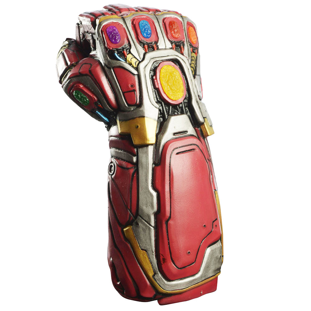 Avengers Endgame Infinity Handske Deluxe innehåller en detaljrik infinity handske i rött med 6 stycken infinity stones. Infinity handsken har ett hål där du kan stoppa in din arm och hand. Handsken är fast och går ej att räta ut eller böja. Handsken är tillverkad av latex och skumgummi material.