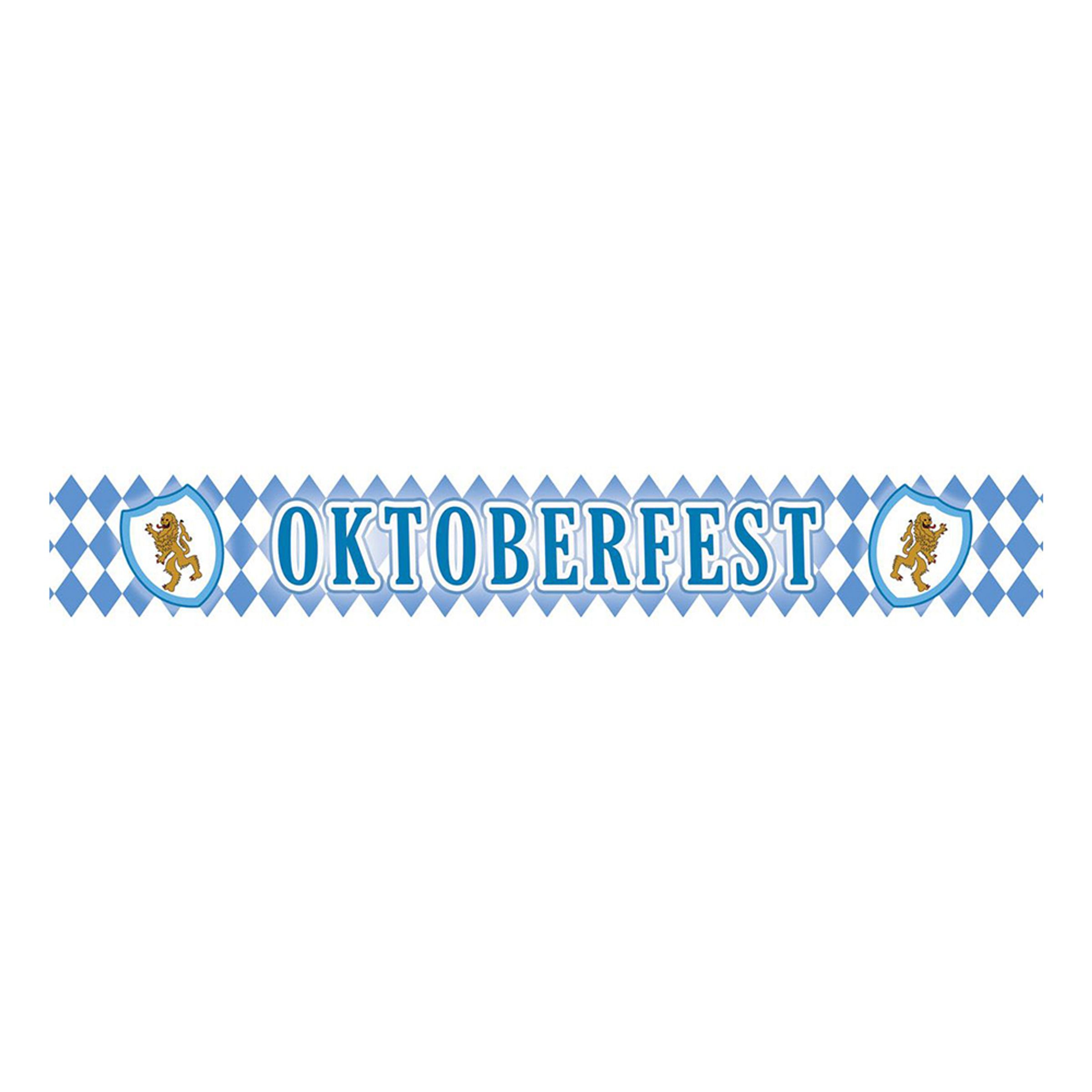 Avspärrningsband Oktoberfest innehåller ett rutigt band i vitt och blått. På bandet står det Oktoberfest med blåa bokstäver och bandet är också dekorerat med gula lejon. Bandet är 610 x 8 cm stort och tillverkat i plast.