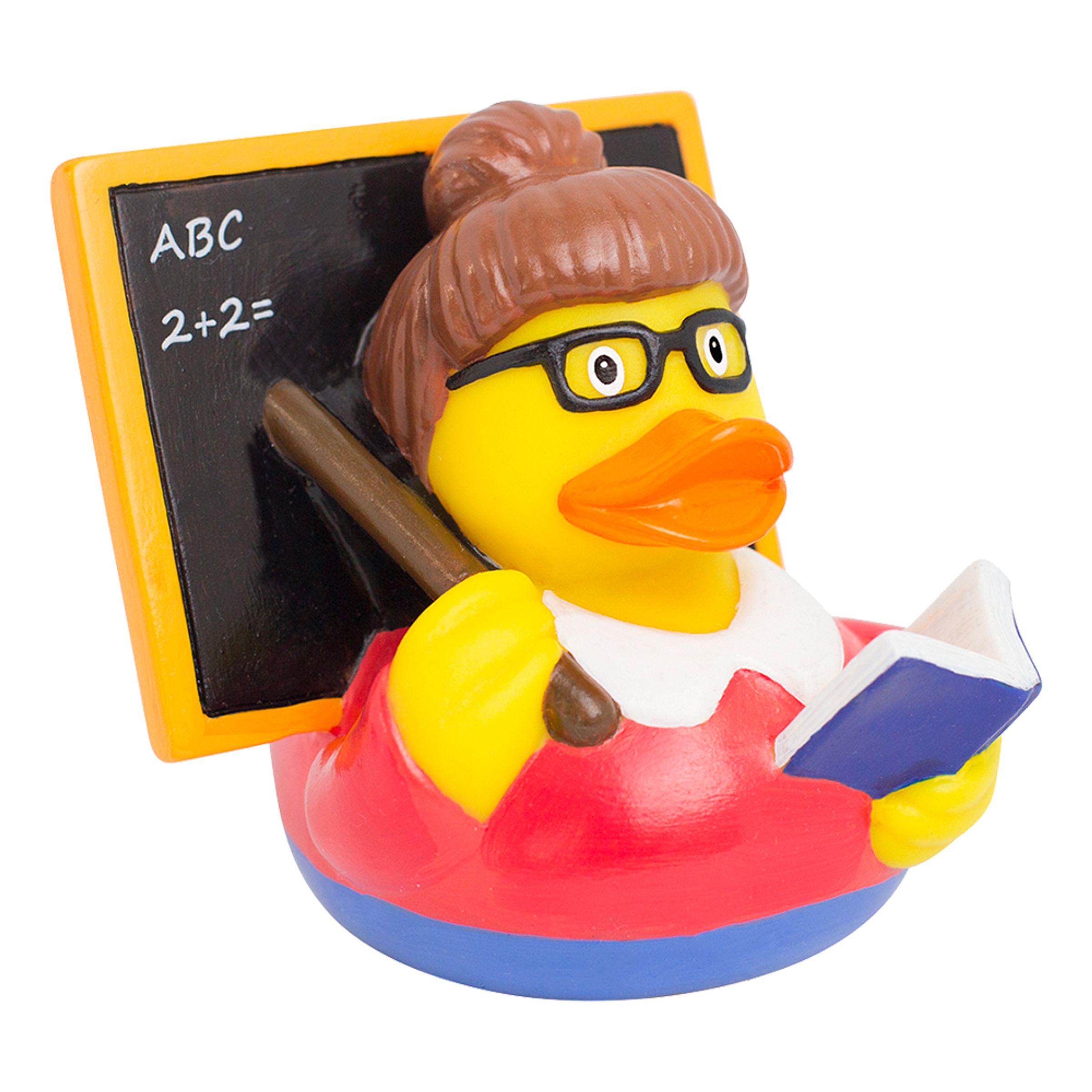 Badanka Lärarinna är en gul badanka klädd som en lärarinna. En rolig och söt present till din favoritlärare, din kompis eller ditt syskon att ha i badkaret eller som skojig dekoration!