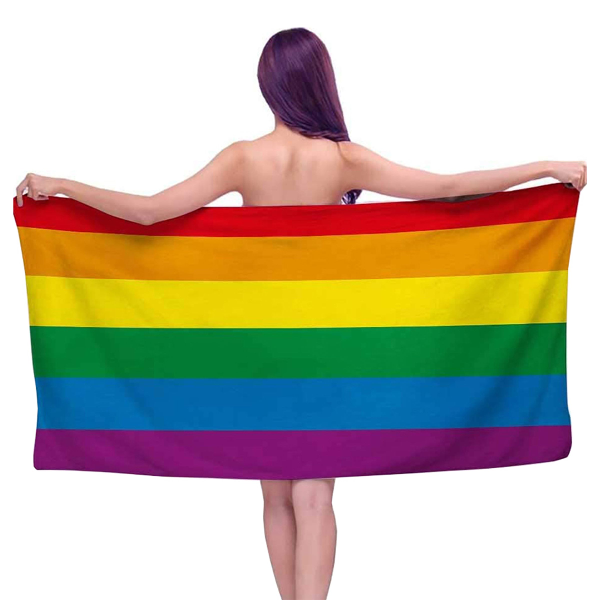 Hylla HBTQ-rörelsen på stranden genom att sola på en regnbågsfärgad Pride-handduk och njut av värme och acceptans!