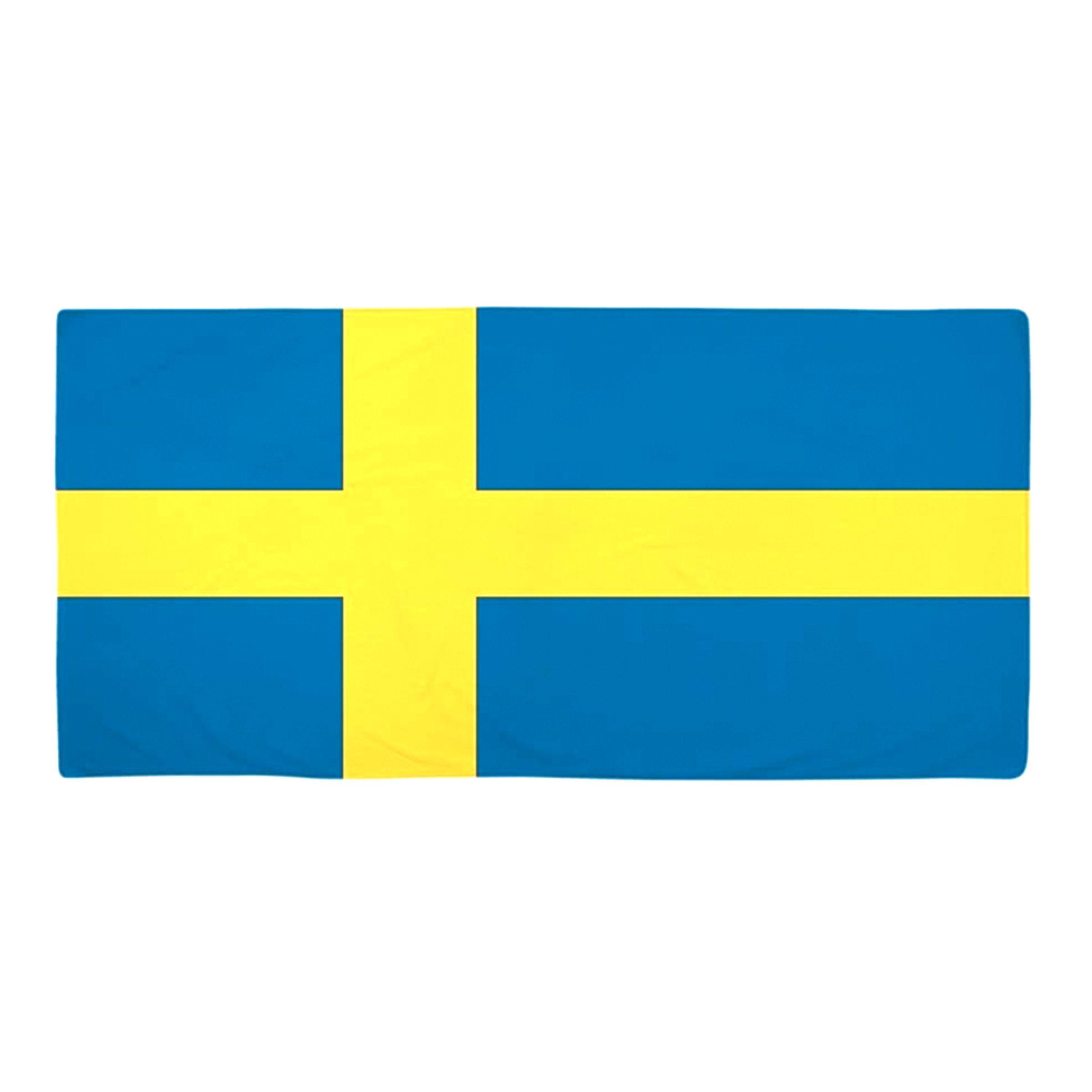 Badhandduk Sverige levereras styckvis, mäter cirka 67 x 140 cm stor och är tillverkad i ett mikrofiber-material. Kommer med motiv av den svenska flaggan.