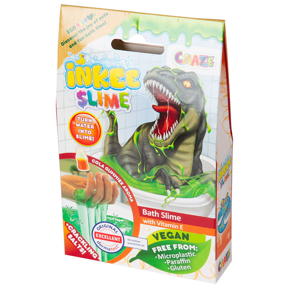 Badslime Dinosaurie omfattar ett häftigt badslime i färgen grönt med doft av colaflaskor godis. Innehåller vitamin E och är fri från mikroplaster, paraffin och gluten.