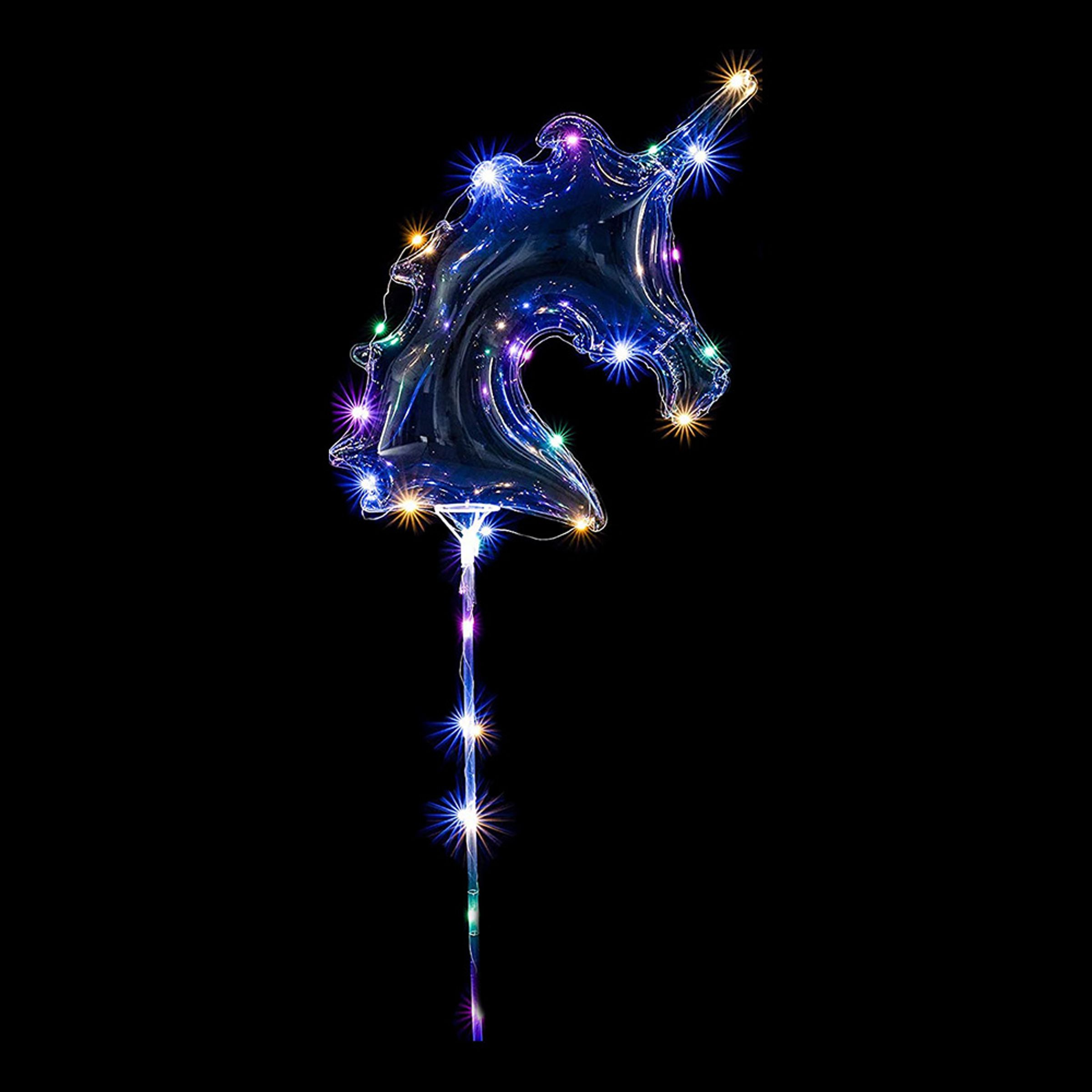 Enhörningar + LED = SANT! Skapa en festlig stämning samtidigt som du imponerar på alla dina gäster med den här helcoola ballongen som dessutom lyser upp mörkret med LED-belysning! Blås upp den med helium om du vill att ballongen ska flyga, eller vanlig luft om du vill fästa den på en pinne!
