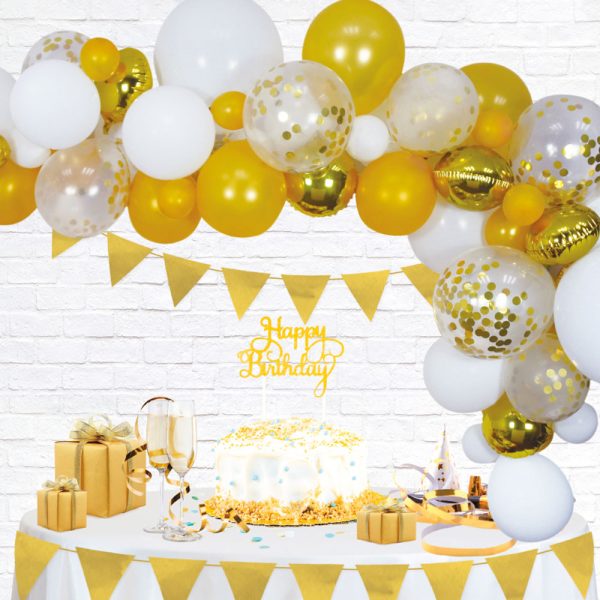 En fin ballongbåge kan enkelt få din fest att se riktigt inbjudande ut, och med detta smarta ballongbåge kit kan du enkelt sätta ihop din alldeles egna ballongbåge! Ett riktigt praktiskt ballongbåge kit med 70 stycken ballonger i vitt och guld och ett plastband att fästa ballongerna på. Supersmidigt kit för alla som vill skapa en riktigt imponerande ballongdekoration att pynta festen med. Passande ballongbåge till alla fester, kalas och firanden i vitt och guld.