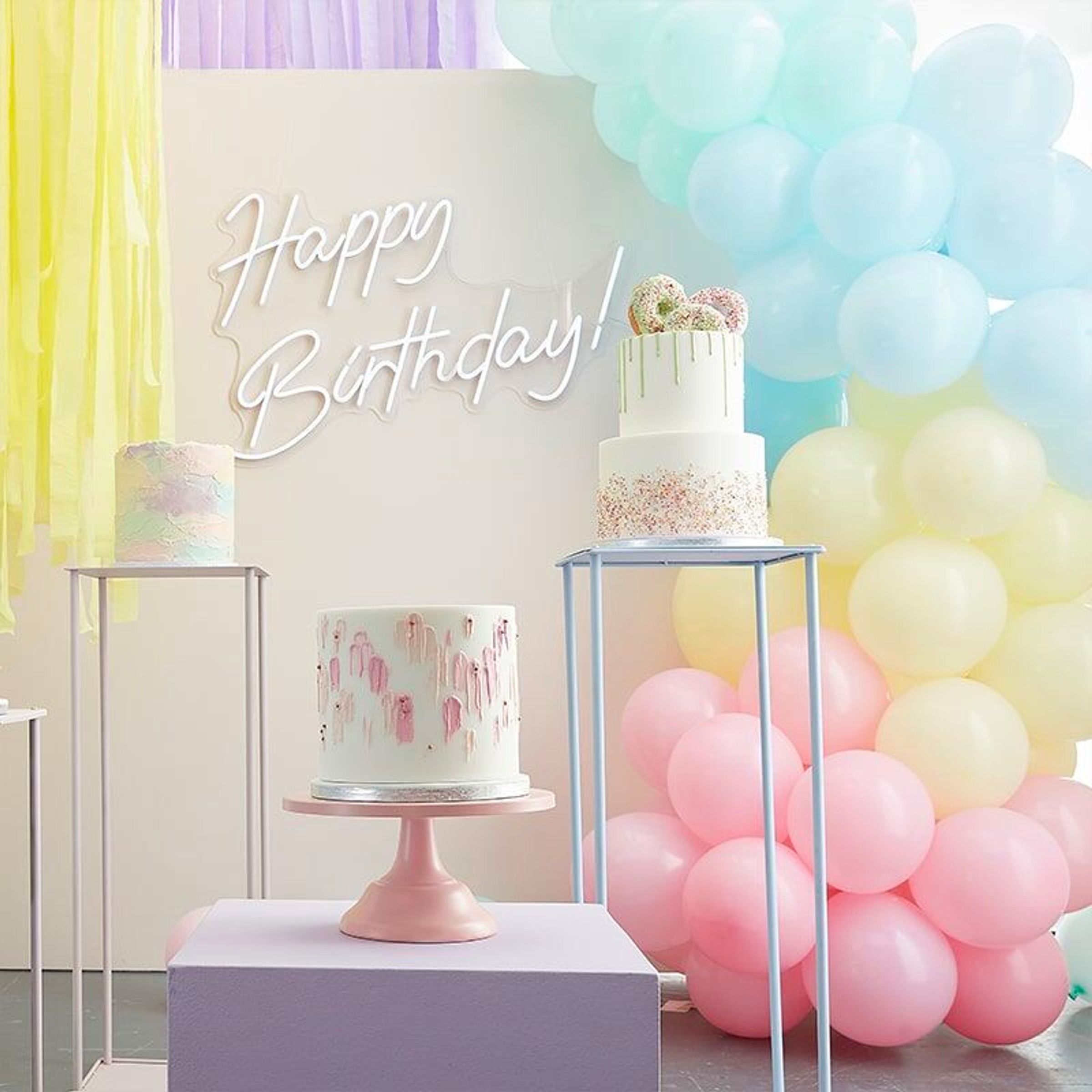 Är det kalasdags? Här har du en ballongbåge i regnbågens alla färger att liva upp stämningen med! Lite färg sätter ju liv på tillvaron som man brukar säga! Den här pastellkombon är det perfekta dekorationen till babyshowern, möhippan eller varför inte barnkalaset!