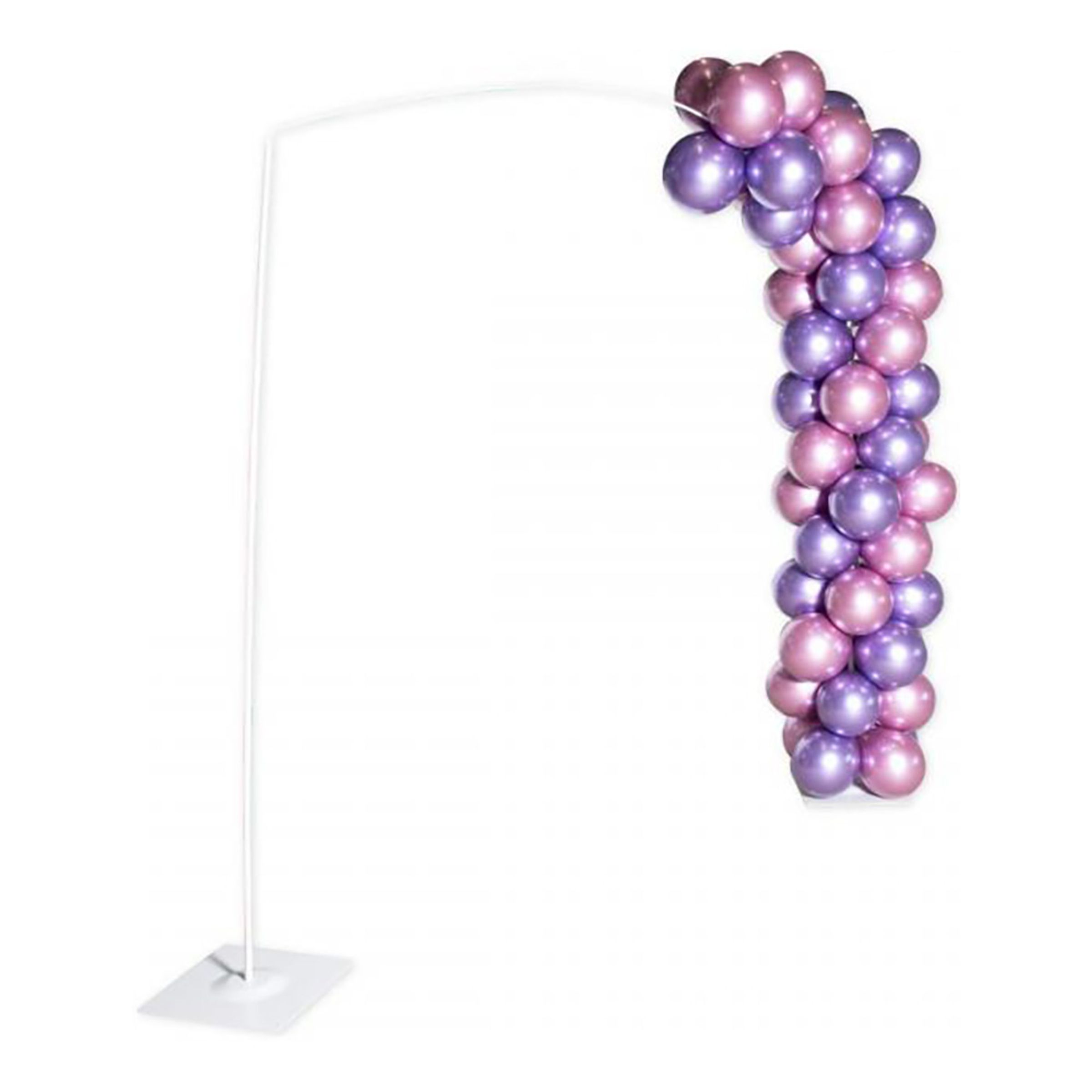 Ballongbåge Stor i Metall är en ballongbåge med en tung fot som gör att den står stadigt på golvet eller marken. Den är tillverkad i metall och är 250 cm hög och 230 cm bred. Bruksanvisning på svenska medföljer. Ballonger ingår inte.