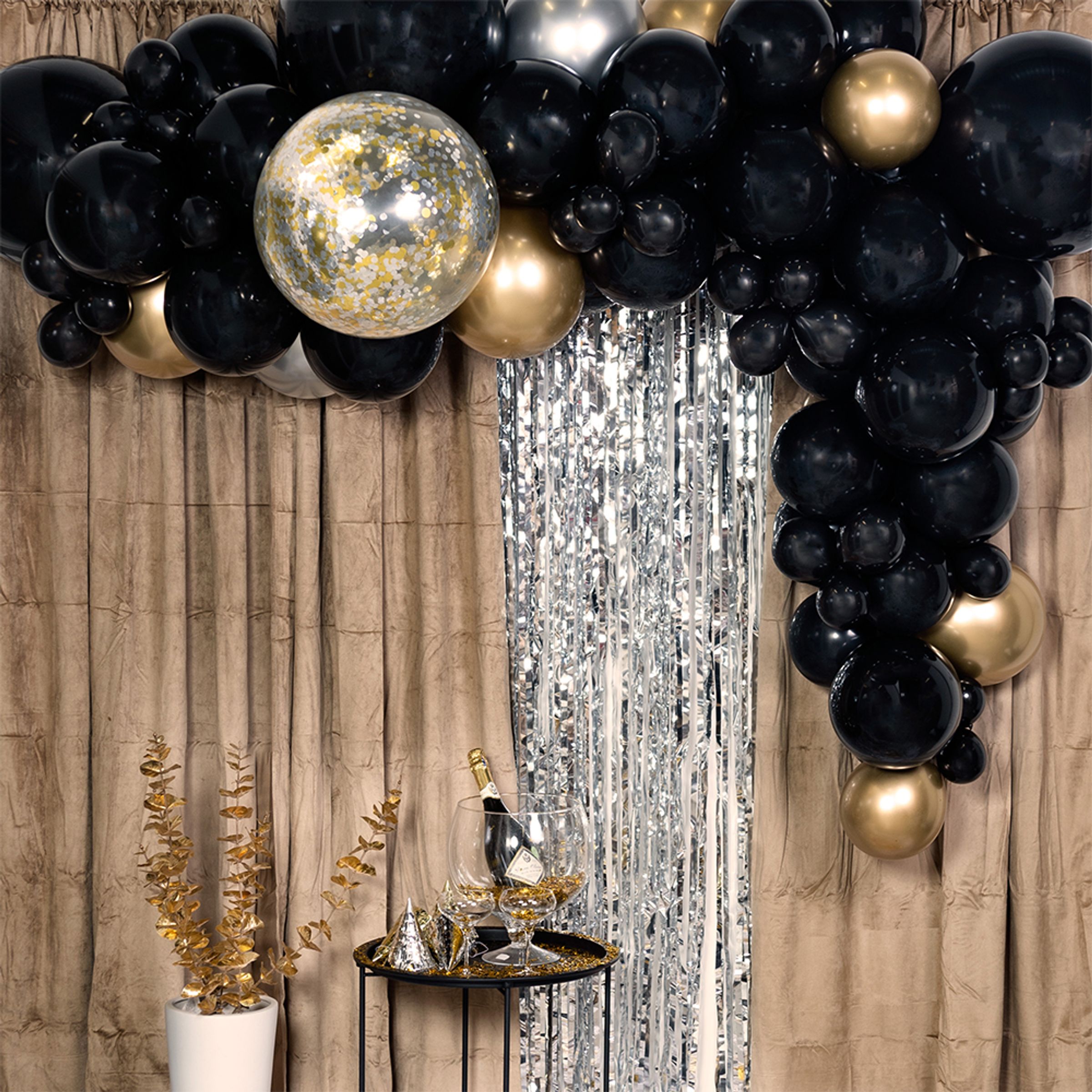 Letar du efter ett praktiskt ballongbågekit inför nyårsafton, bröllopet eller invigningen? Då har du hittat rätt! Med detta kit får du en galet snygg ballongbåge på fem meter med massa snygga ballonger i färgtemat svart/guld. Hur bra som helst!