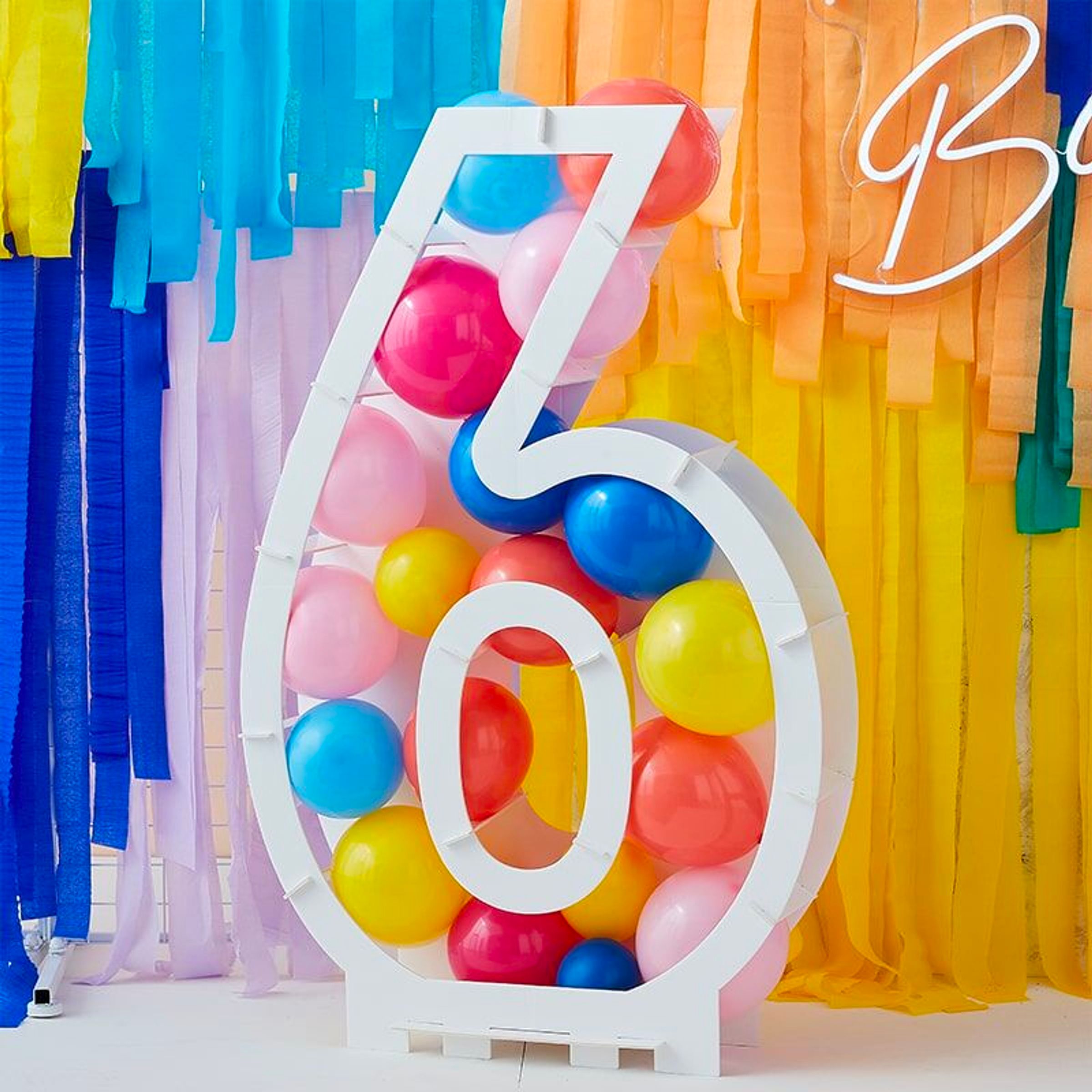 Den ultimata dekorationen på födelsedagsfesten! Istället för att låta ballongerna sväva i taket skapar du snygga kreationer med hjälp av våra stilrena sifferboxar. Fyll siffrorna med ballonger i födelsedagsbarnets favoritfärger för att maxa firandet och skapa en minnesvärd detalj på festen!