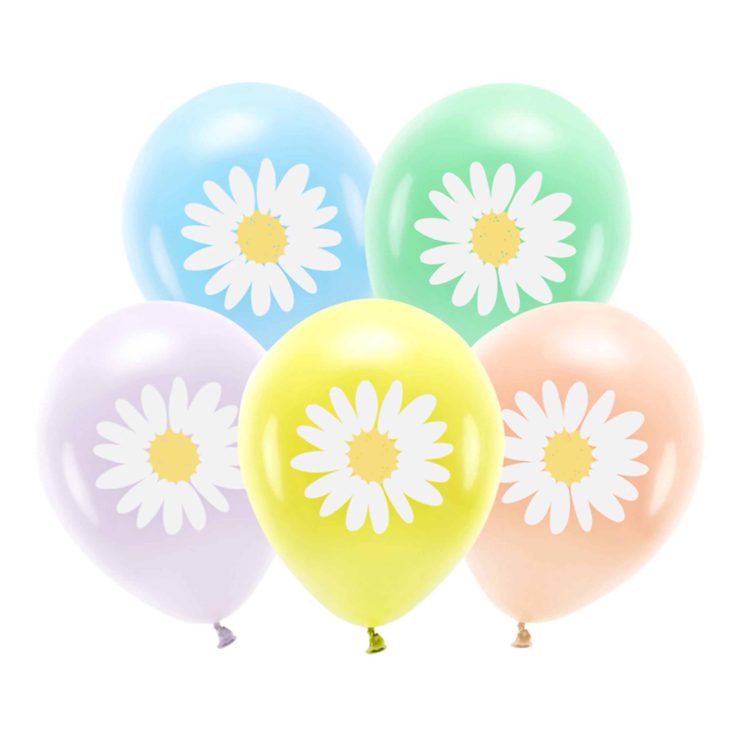 Ballonger Blommor Flerfärgade är festliga ballonger med blom-motiv som kommer i färgerna; lila, gul, persika, mint-grön och blå. Perfekt till såväl sommarfesten som till födelsedagskalaset, skolavslutningen eller midsommar!