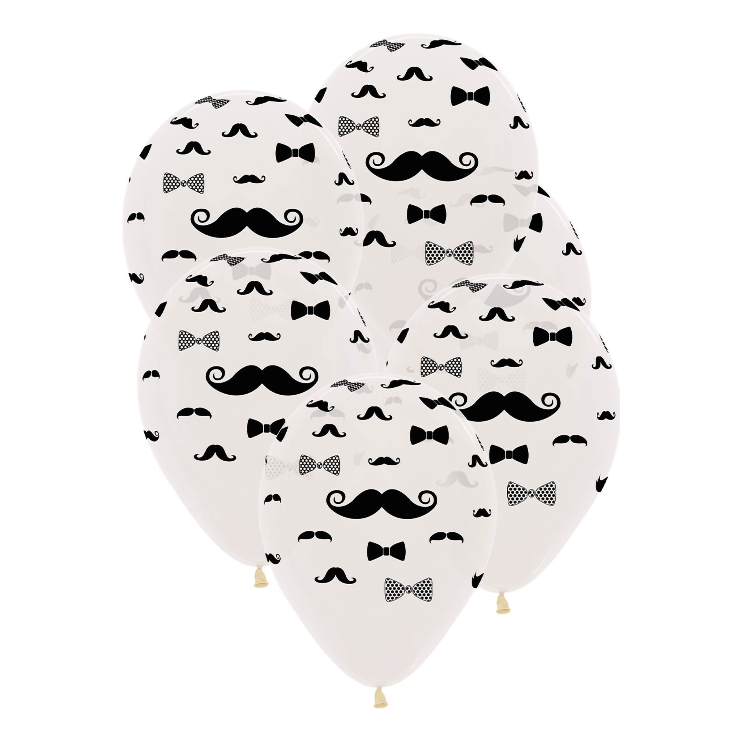 Ballonger Mustascher inkluderar sex stycken vita ballonger som alla kommer med motiv föreställande flugor och mustascher. Ballongerna passar utmärkt att fylla med helium för svävande effekt, vilket du givetvis hittar hos oss.