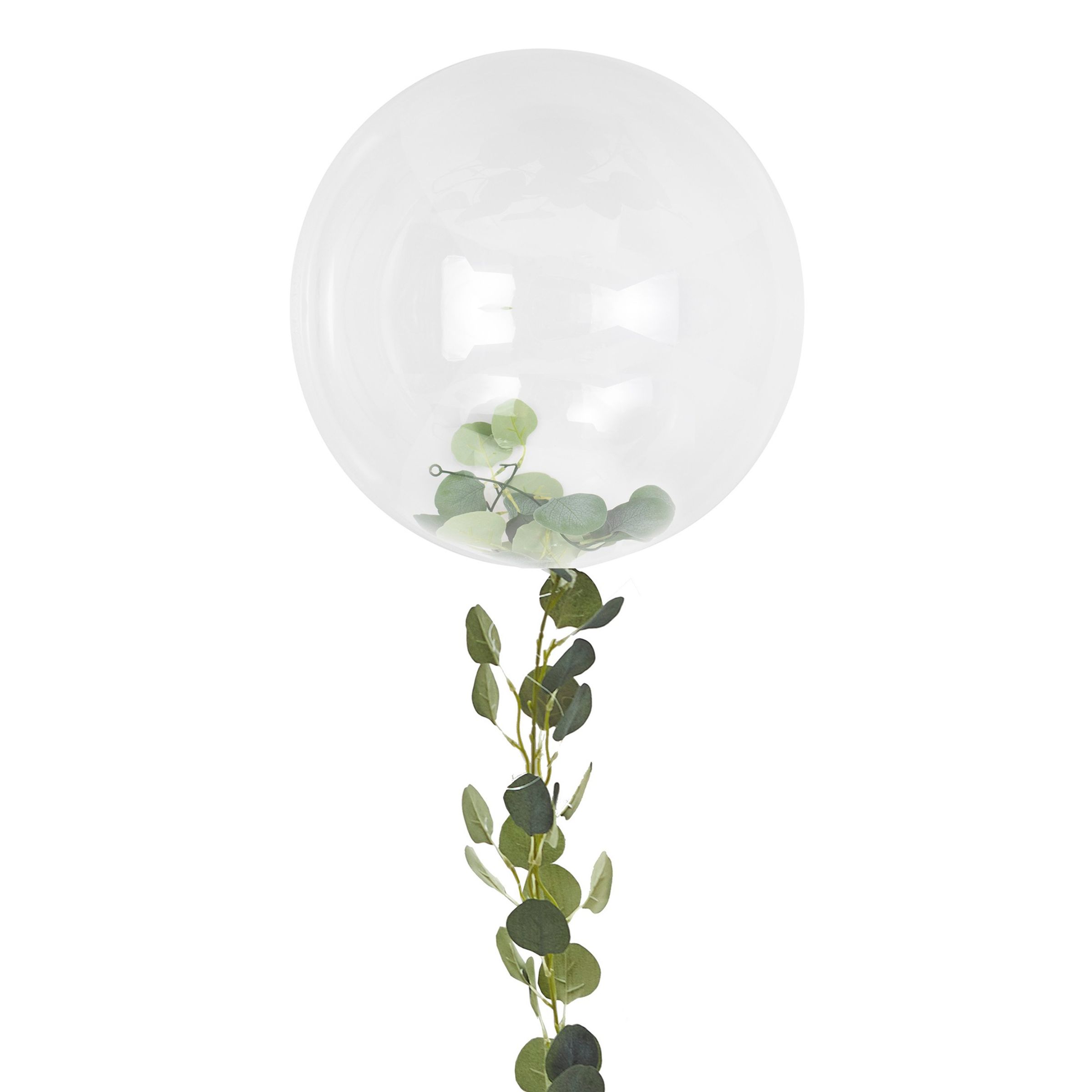 Otroligt vacker ballong att blåsa upp och placera på ett väl utvalt ställe på bröllopet. Ballongen levereras styckvis och kan fyllas med både helium och luft. Ballongen är transparent och inkluderar ett kvistliknande ballongsnöre med blad på.