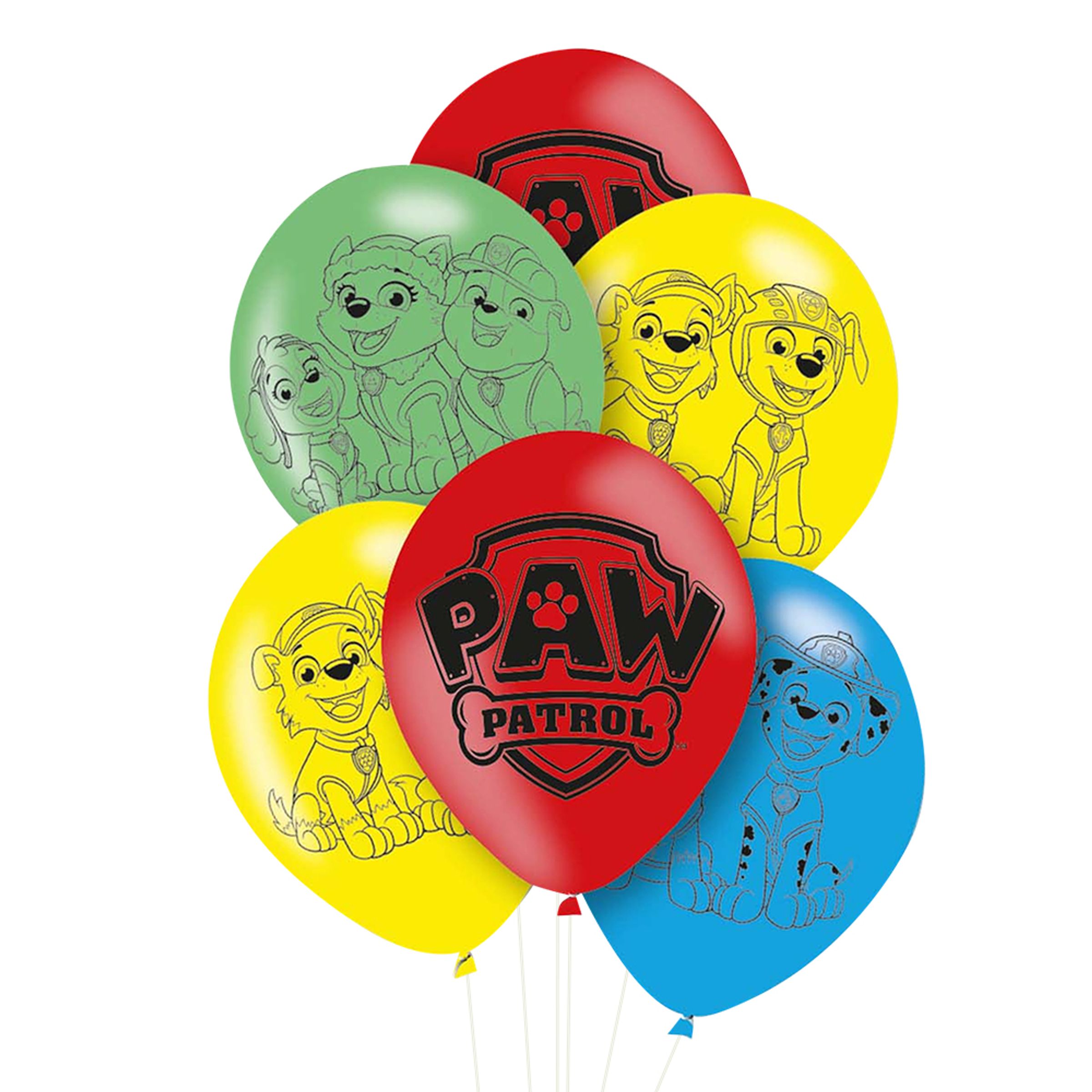 Ballonger Paw Patrol inkluderar 6 stycken färgglada latexballonger med motiv av gänget från Paw Patrol. Ballongerna kan fyllas med luft eller helium. Passar perfekt till barnkalaset!