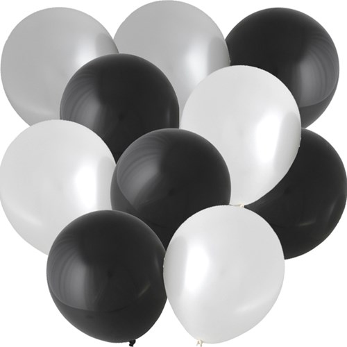 Ballonger som festdekoration kan liva upp vilken fest som helst. Detta set med ballonger i svart och vitt blir ett stilrent festpynt som passar vid de flesta tillfällen och tillställningar. Fina att pynta med på t.ex. födelsedagsfest, bröllop, babyshower, nyårsfest – ja när som helst! Finns det anledning att fira så finns det anledning för ballonger!