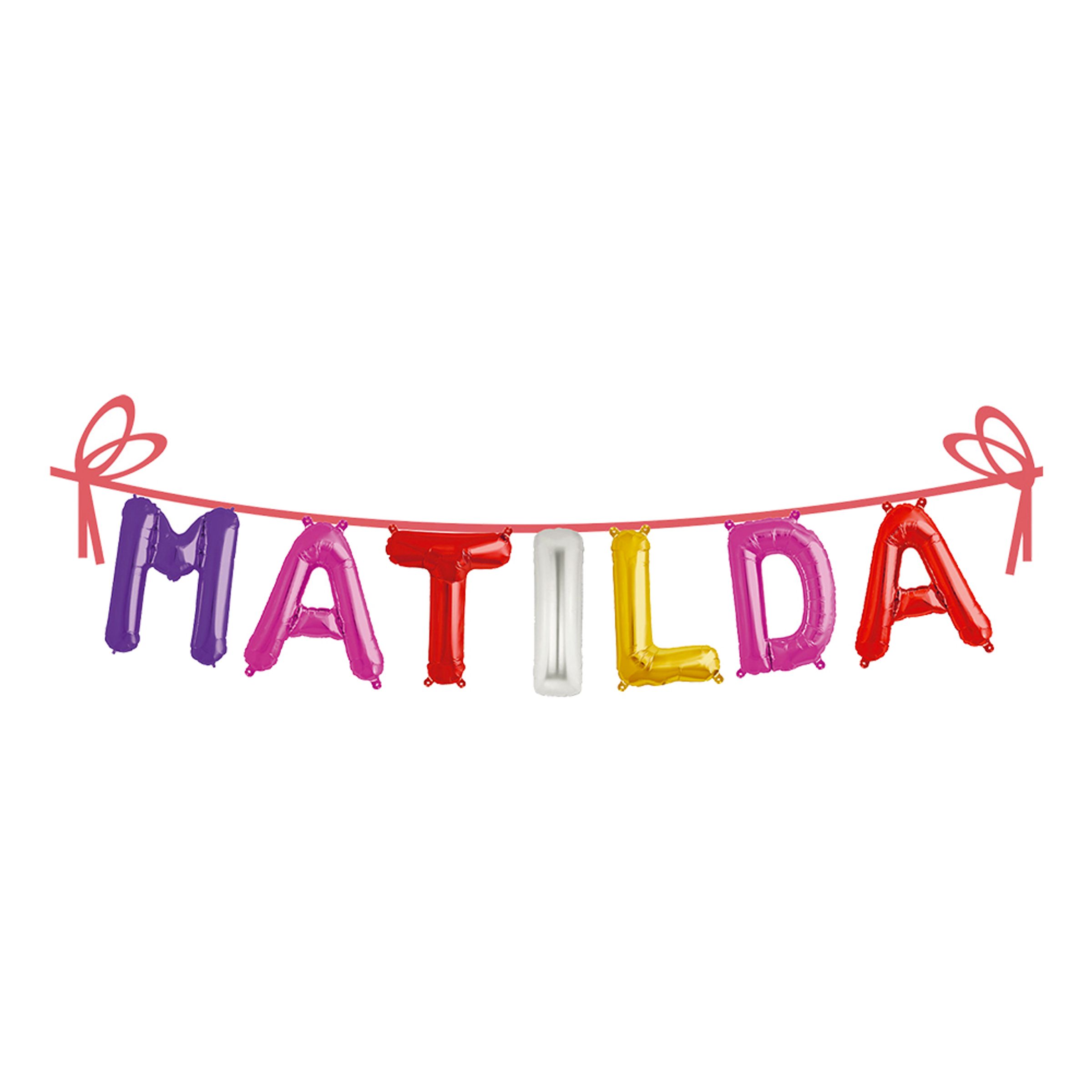 Folieballong Girlang Namn består av färgglada folieballonger i form av en massa olika namn som du kan välja och vraka mellan.