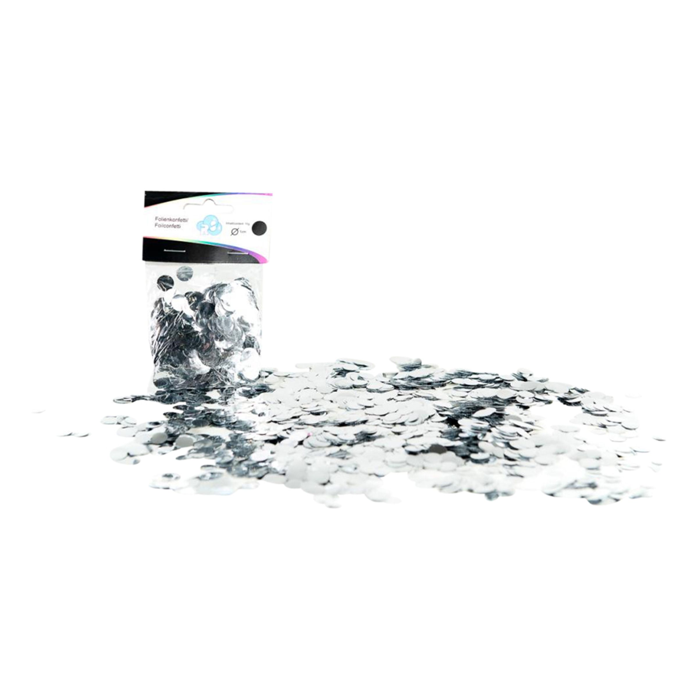 Ballongkonfetti Silver innehåller rund silverfärgad konfetti. Den är tillverkad i folierat papp och varje konfetti mäter ca 1 cm. Konfettin kan användas till ballonger men även som bordsdekoration. Välj mellan 15 g konfetti i en påse eller 1 kg konfetti i en burk.