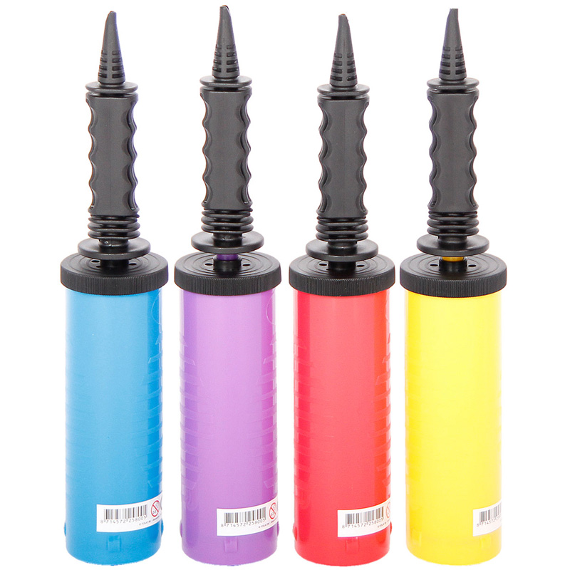 Ballongpump omfattar en 28,5 cm stor ballongpump som lämpar sig till alla typer av ballonger. Ballongpumpen är tillverkad av plast och finns i fyra olika färger. Vilken färg du får blir en överraskning.